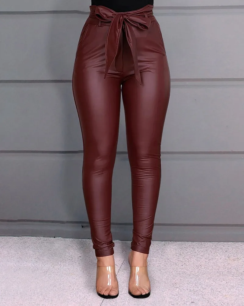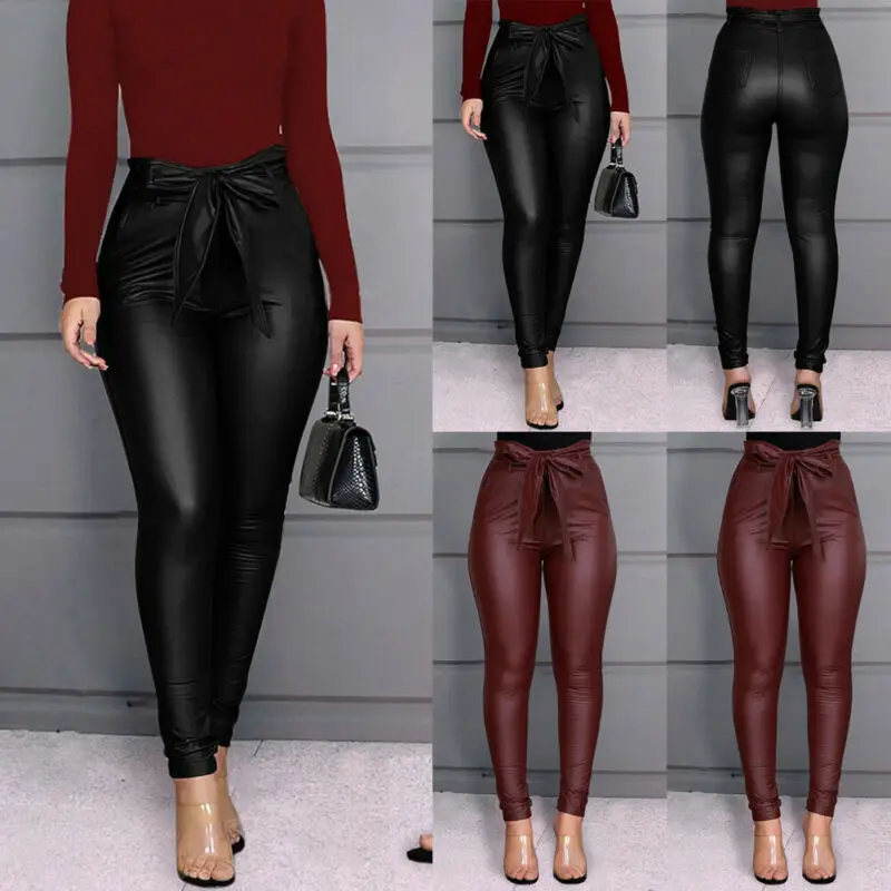 Женские леггинсы из искусственной кожи, модные однотонные эластичные облегающие брюки-карандаш с высокой талией