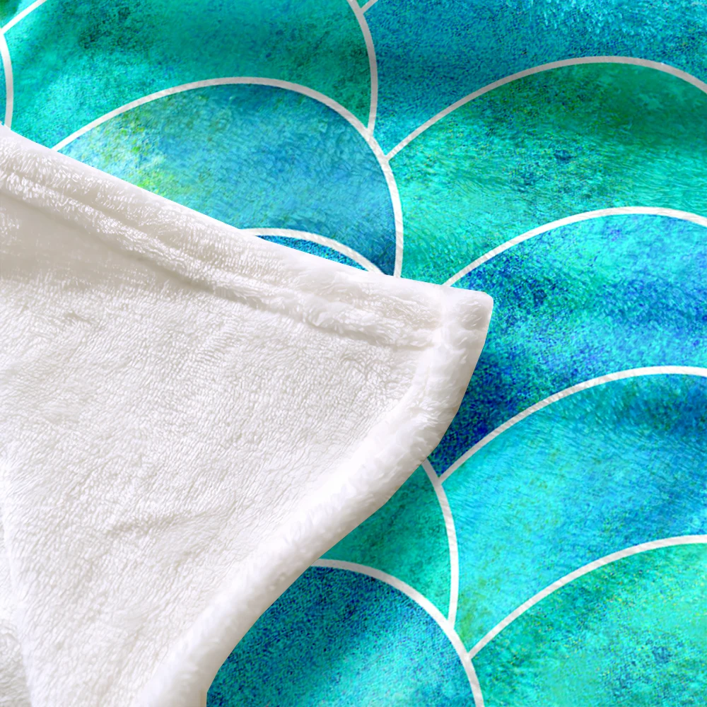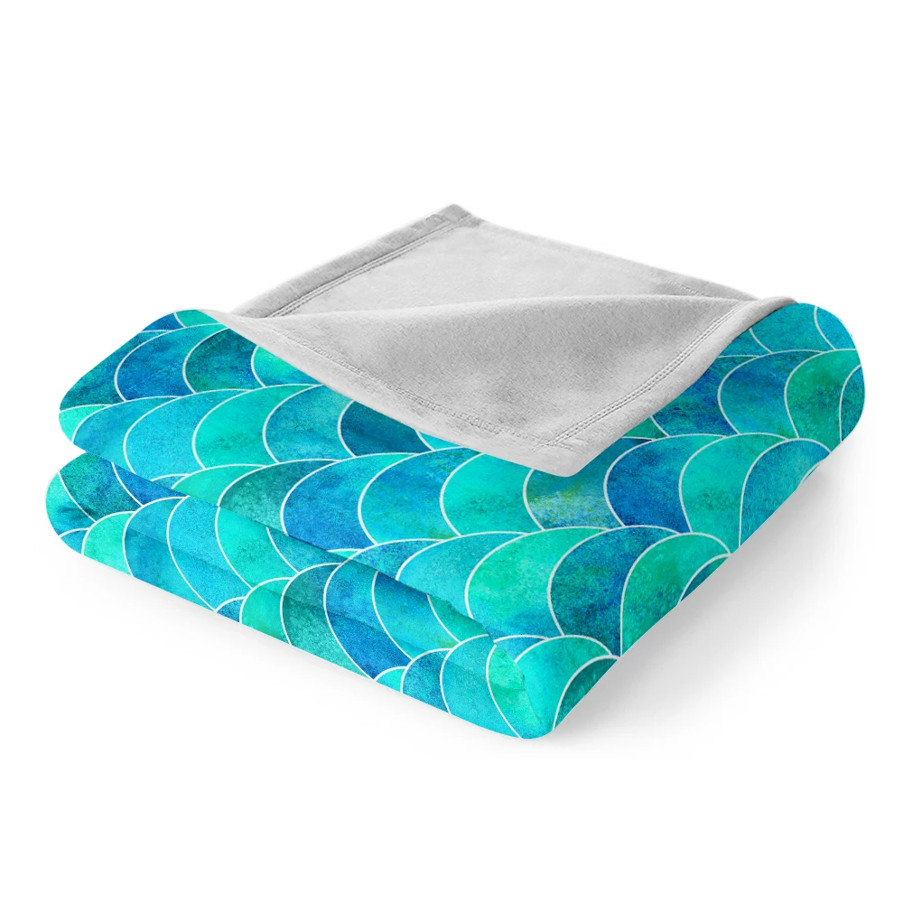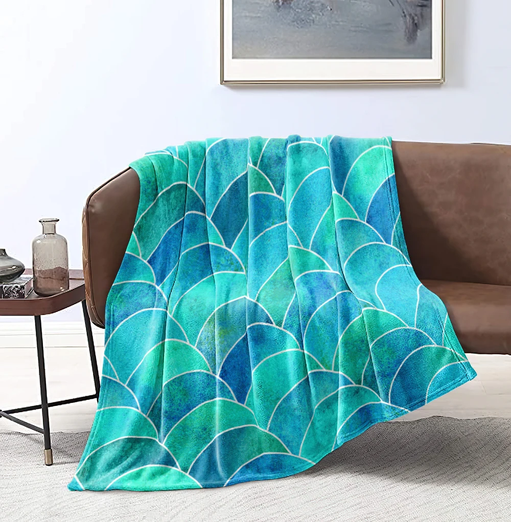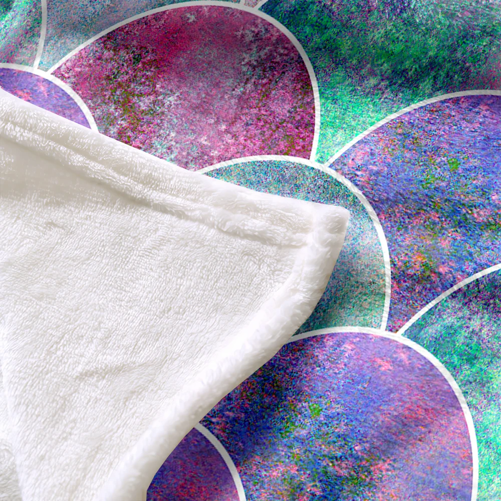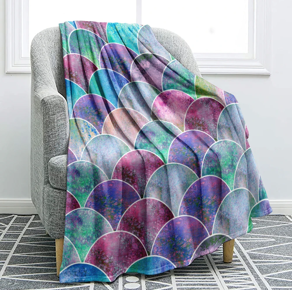 Цветное фланелевое одеяло в виде рыбьей чешуи, акварельное геометрическое абстрактное меховое одеяло, фиолетовое, синее, Зеленое одеяло для кровати