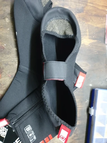 Они выглядят великолепно, сделаны из материала, толстый неопрен, с хорошей отделкой и хорошими швами. Наконечник изготовлен из более прочного материала на случай, если вам придется ходить. Очень доволен покупкой