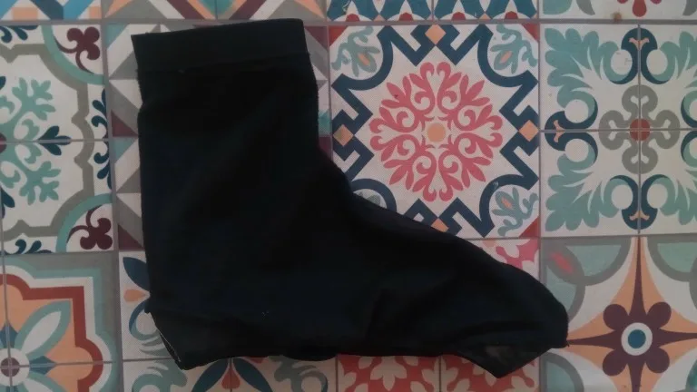 Добротные велобахилы, довольно быстрая отправка и доставка в СПб. Материал - что-то типа тонкой резины с флисовым утеплением. Не промотают, не продуваются. Носок усиленный, но особо в них все равно не походишь - протирается.