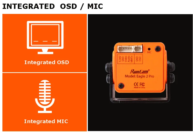 Характеристики:Модель: RunCam Eagle 2 ProДатчик изображения: 1/1/1 "CMOS-датчикГоризонтальное разрешение: ТВЛОбъектив: FOV 170 2,1 мм 16:9 FOV 140 2,5 мм 4:3?Формат экрана: 16:9 / 4:3 переключаемый в OSD менюСигнальная система: NTSC / PAL переключается в OSD менюВстроенное OSD: ДаВстроенный микрофон: ДаСоотношение сигнал/шум> 50 дБЭлектронная Скорость затвора: АвтоМаксимальное усиление: 1-9Мин. Освещение: 0.01Lux1.2FWDR: Global WDRДень/Ночь: Авто/внешний/цвет/B & WМощность: 5-36 В постоянного токаРабочий ток: 12 В при 90 мА/5 В при 200 мАМатериал корпуса: АБС-пластикРазмеры: д28 мм * ш26 мм * В28 ммВес нетто: 15 гОсобенности:1. Формат экрана: 16:9 / 4:3 переключается в экранном меню.2. Глобальный WDR, датчик CMOS.3. Встроенный OSD / MIC.