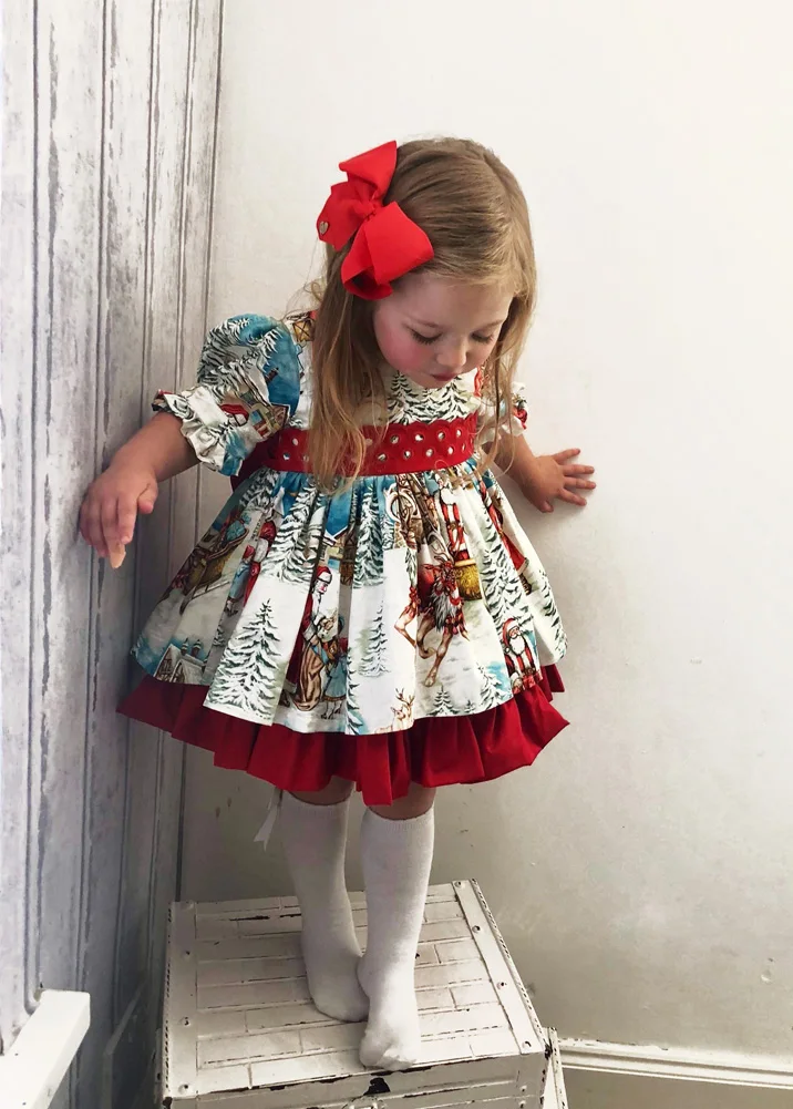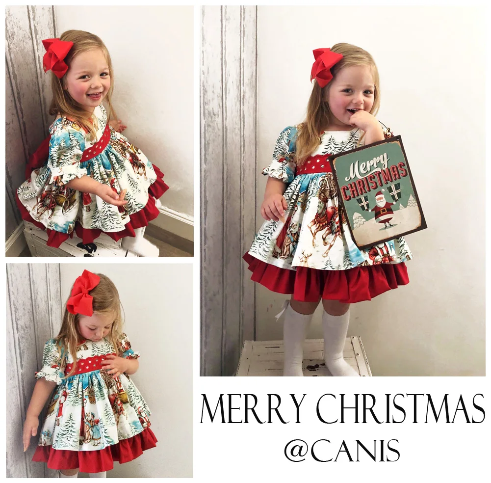 Рождественское платье для маленьких девочек, расклешенное платье с оборками для вечеривечерние, платья принцессы с Сантой, Рождественская одежда