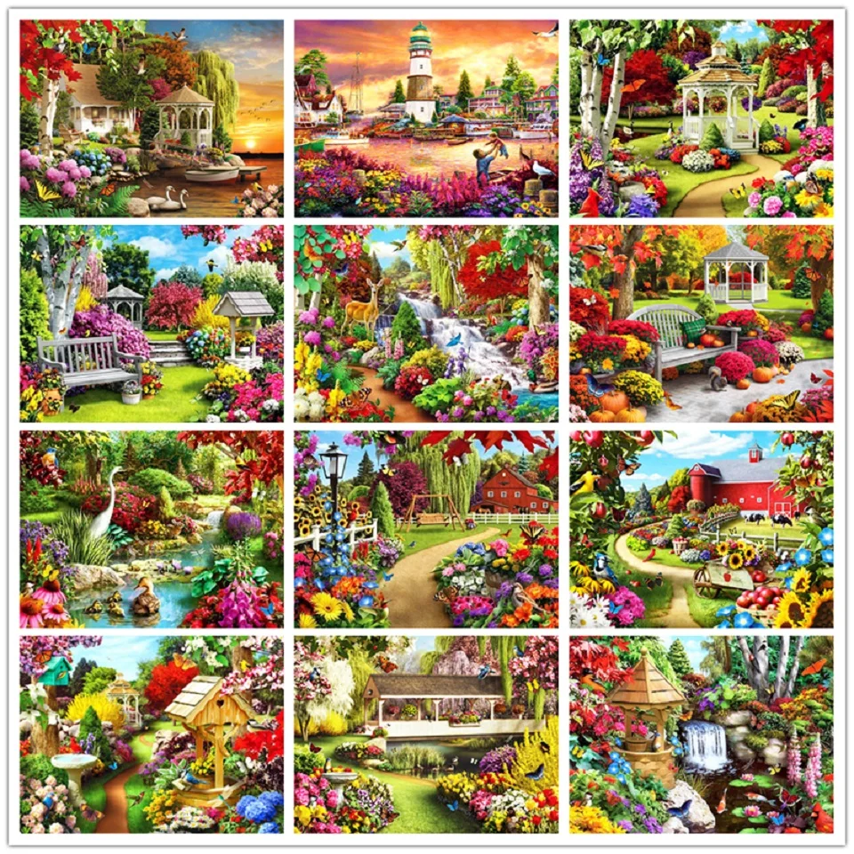 Алмазная 5D Вышивка SHAYI сделай сам, мозаика с садовым пейзажем, вышивка крестиком, полноразмернаякруглая вышивка, украшение для дома