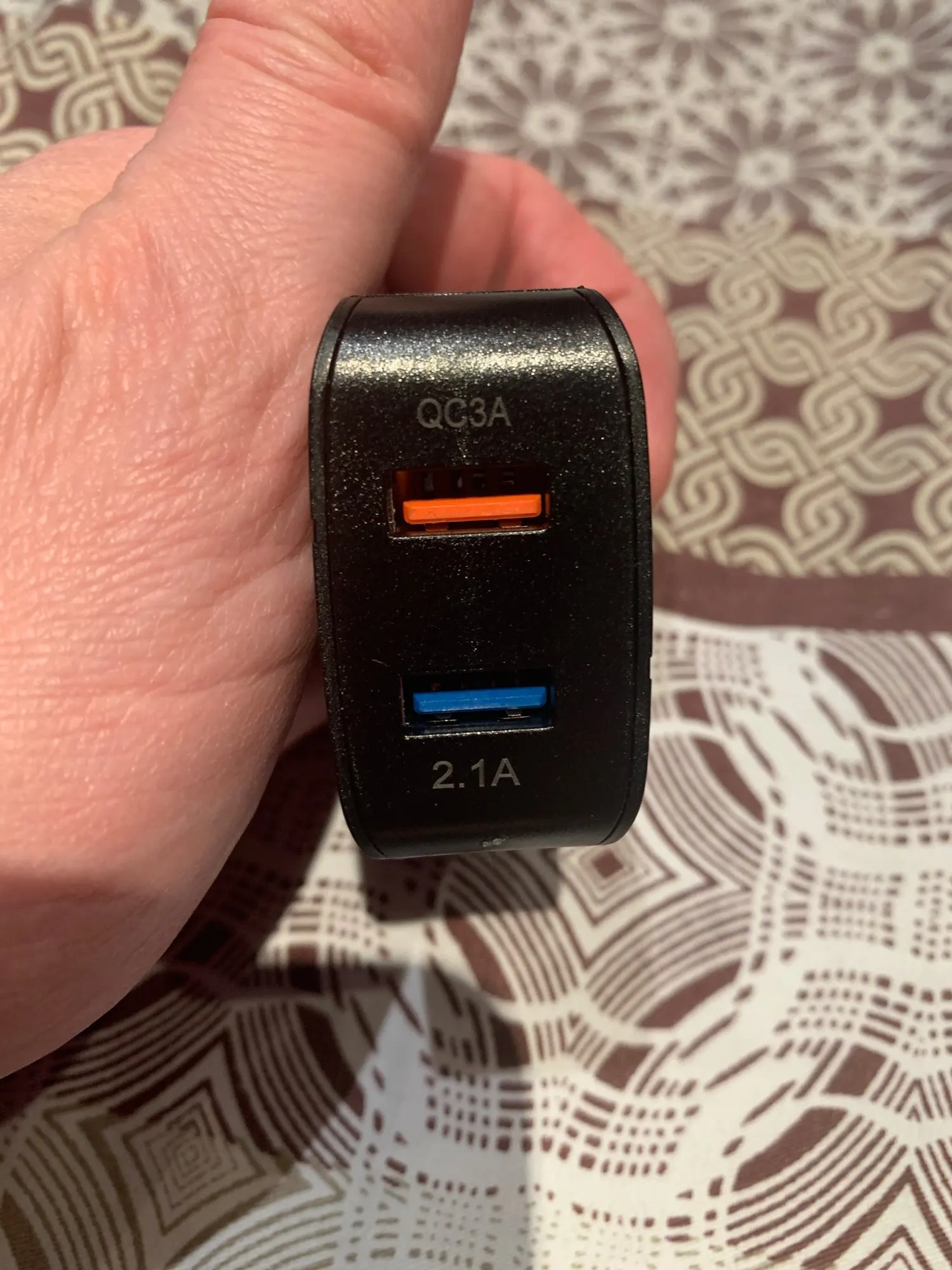 Пришло быстро. Два разъёма на 3, и. 2.1. Разъёмы подписаны. Заряжала через 3. Не сказала бы что быстрее чем обычная зарядка. Шнур использовала оригинальный с данной USB.