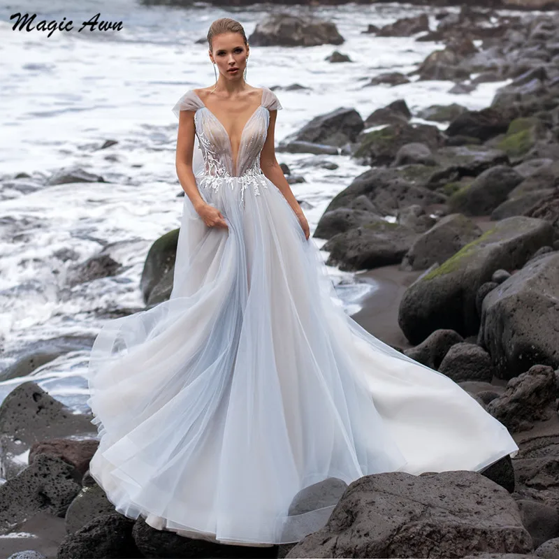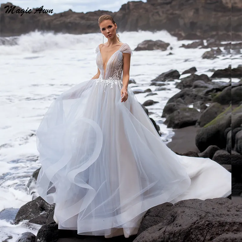 Элегантное свадебное платье в стиле бохо, ТРАПЕЦИЕВИДНОЕ ПЛАТЬЕ С V...