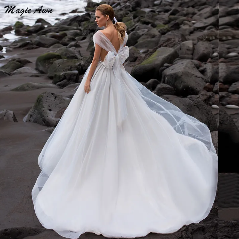 Женское кружевное платье Magic Awn, разноцветное пляжное свадебное платье с бантом, иллюзия аппликации