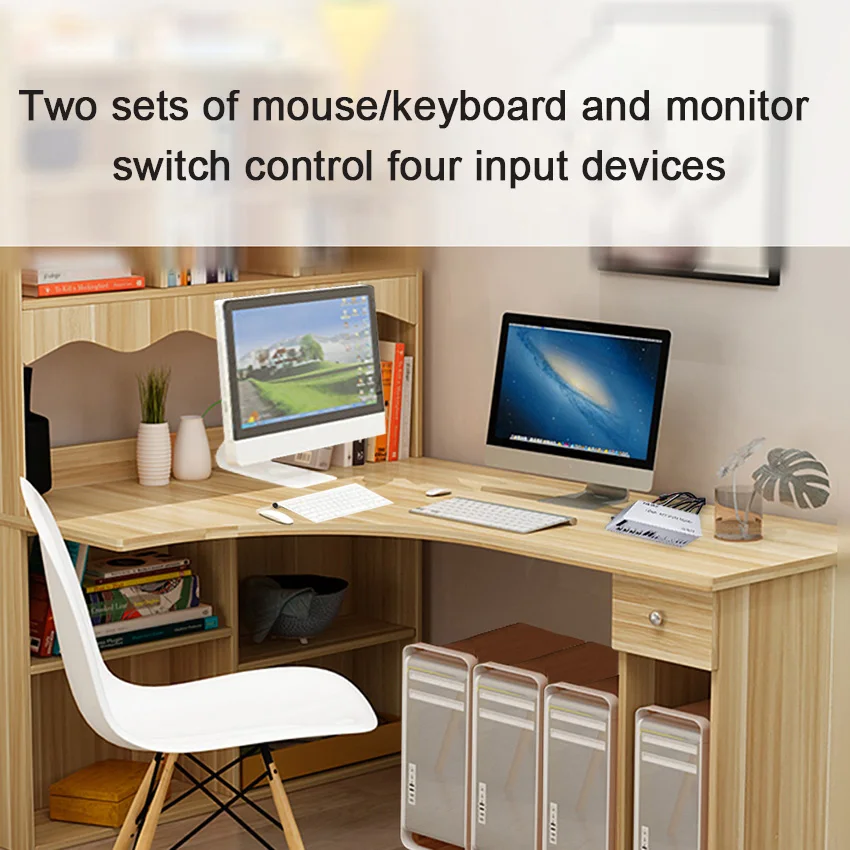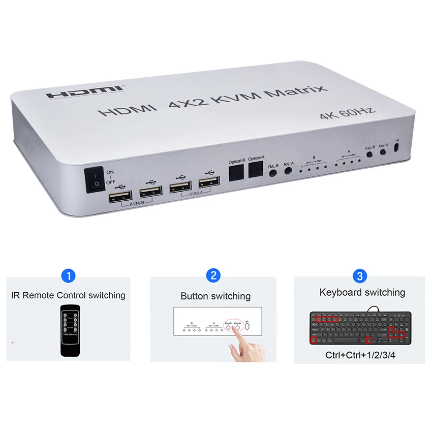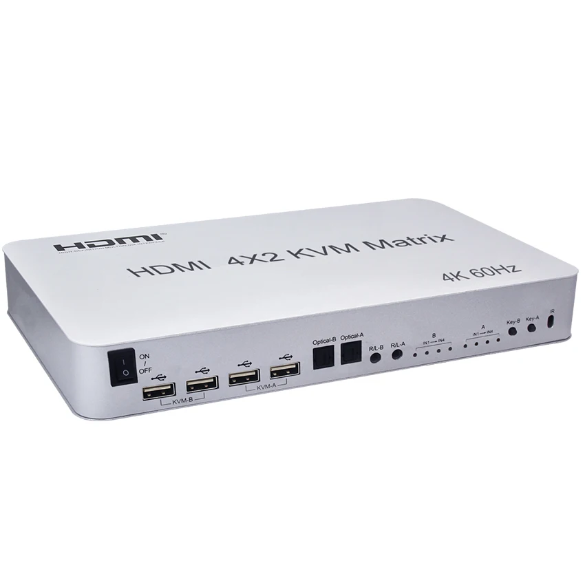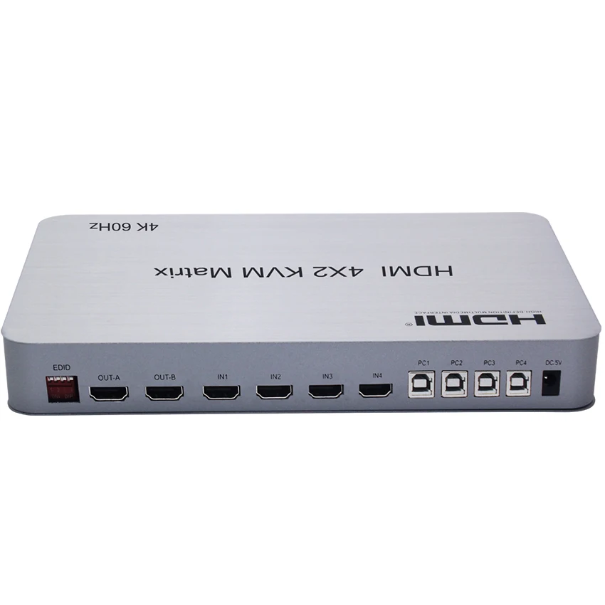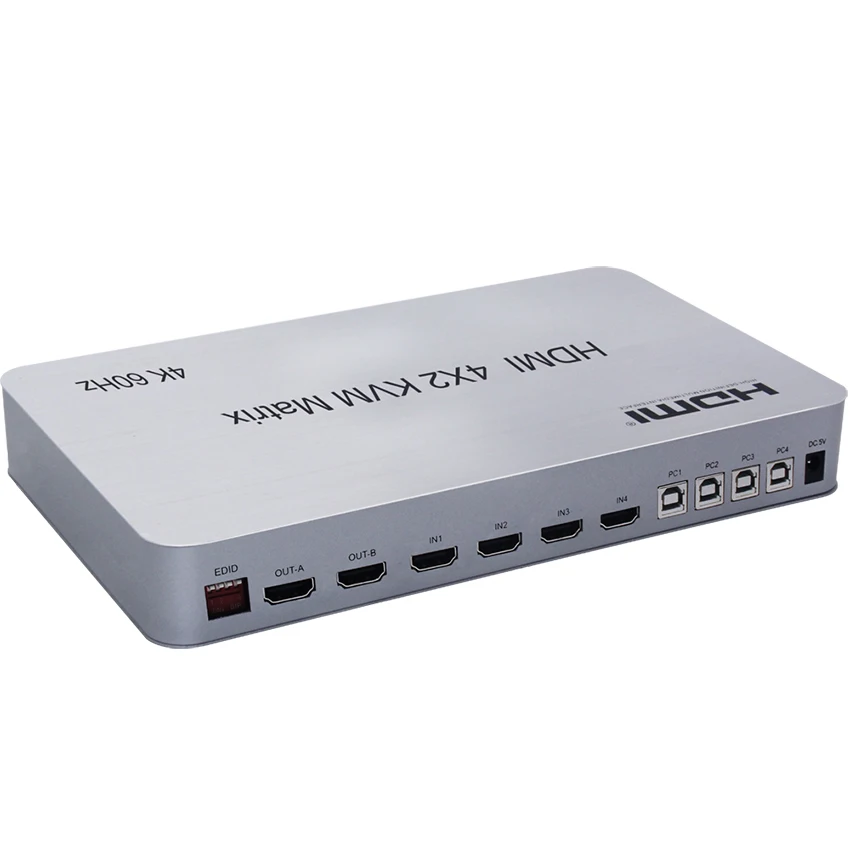 Матричный KVM-переключатель, HDMIHDMI, 4x2 HDMI, для 2 дисплеев, 4K, 60 Гц, USB 2.0, управление до 4 компьютеров