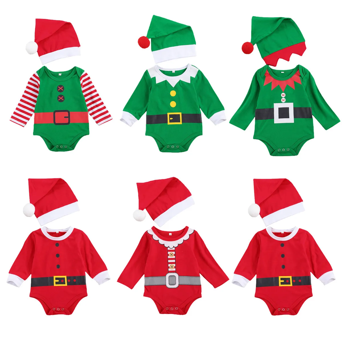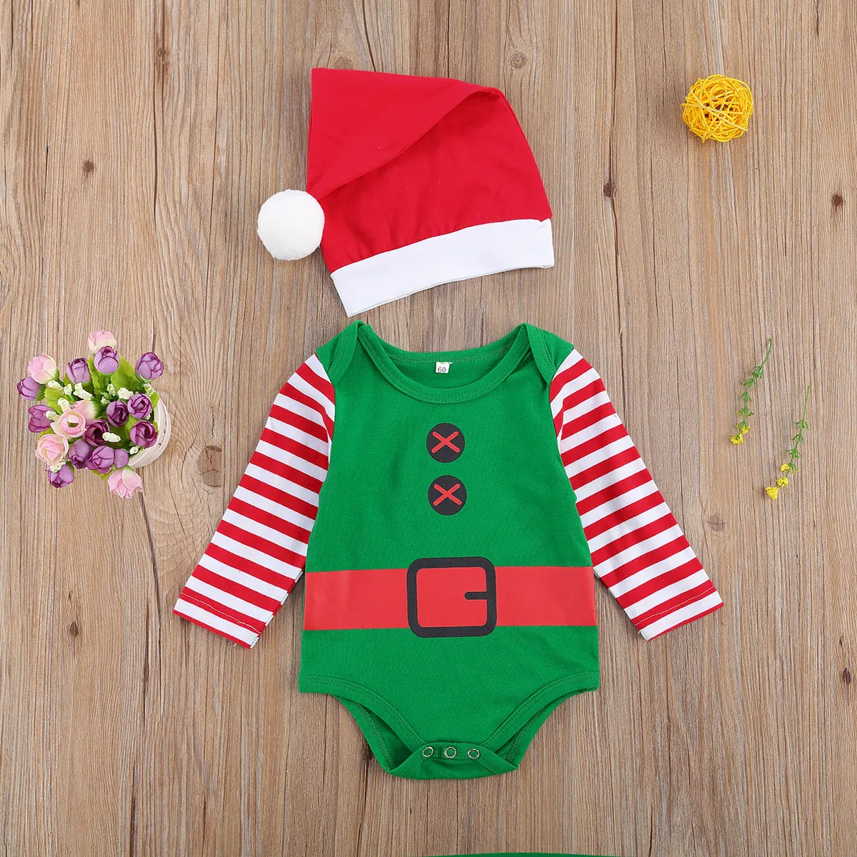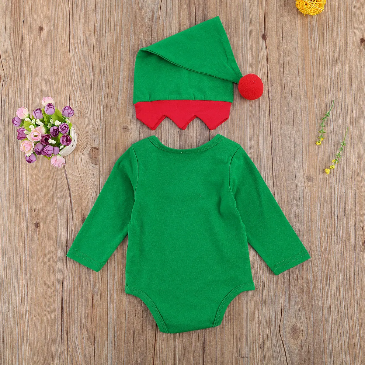 Рождество на возраст от 0 до 12 месяцев, Одежда для новорожденных и маленьких мальчиков и девочек Вечерние боди головные уборы 2 шт. с длинным рукавом хлопковые комбинезоны