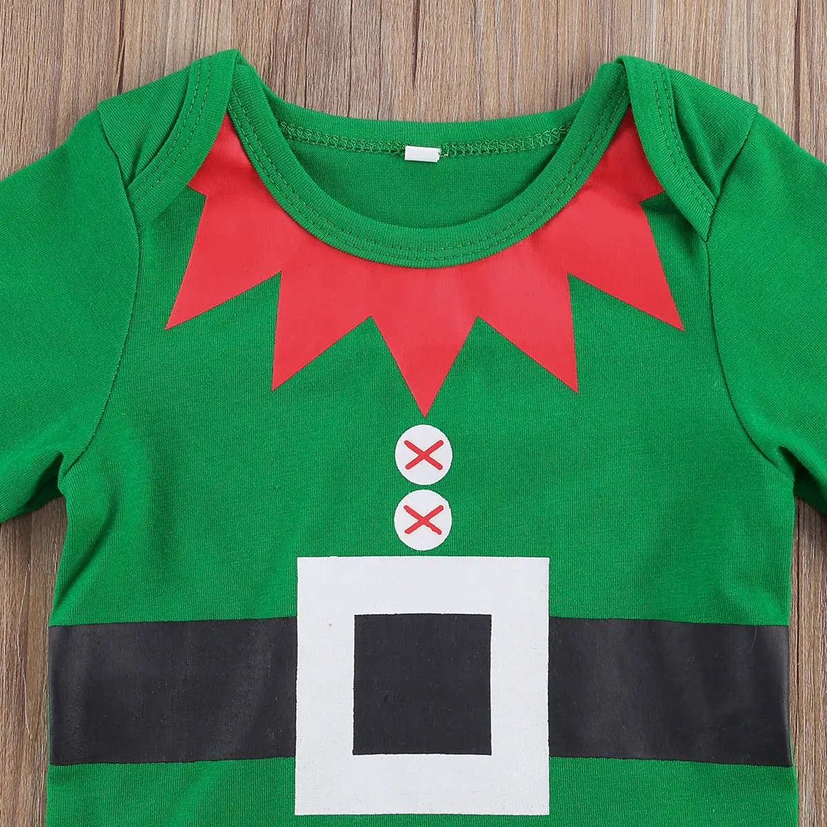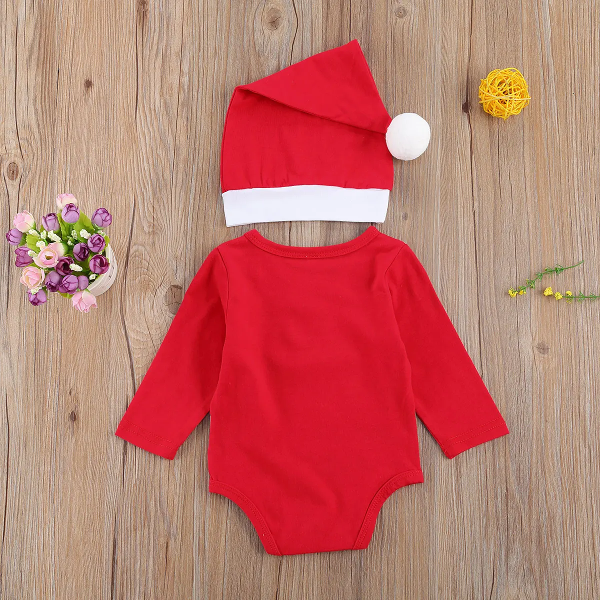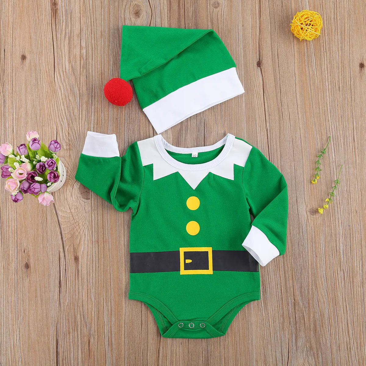 Рождество на возраст от 0 до 12 месяцев, Одежда для новорожденных и маленьких мальчиков и девочек Вечерние боди головные уборы 2 шт. с длинным рукавом хлопковые комбинезоны