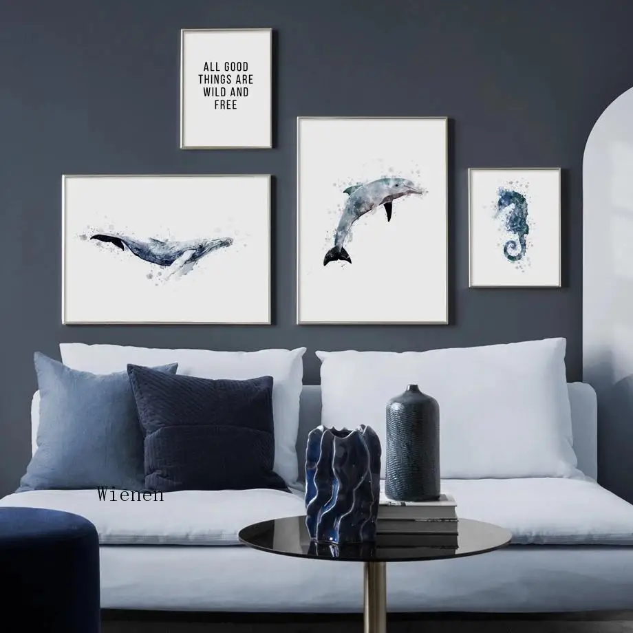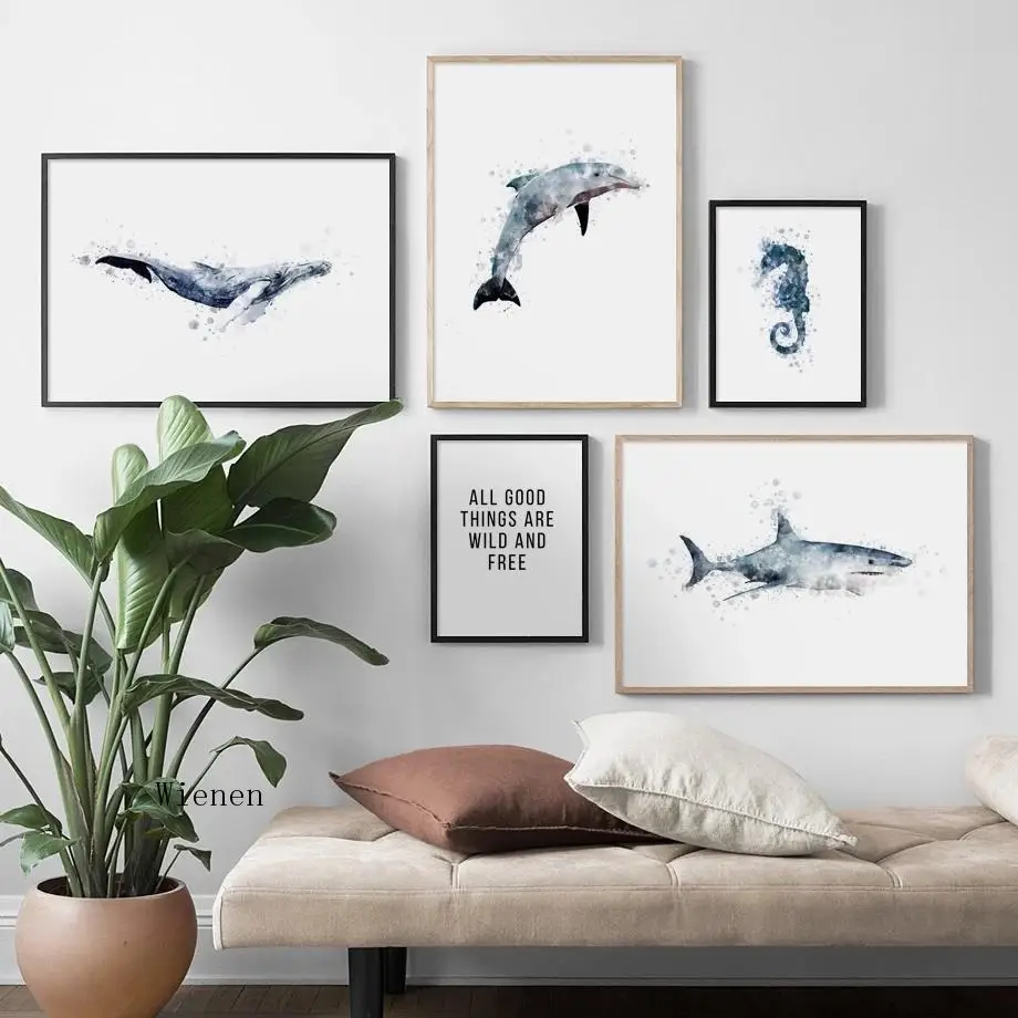 Акула Дельфин КИТ морская лошадь холст картины скандинавские настенные художественные плакаты и принты настенные картины для гостиной украшения дома