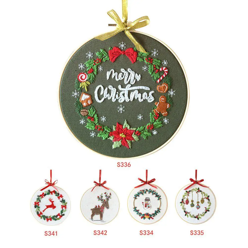Рождественская вышивка для начинающих, наборы для вышивки крестиком с пяльцами