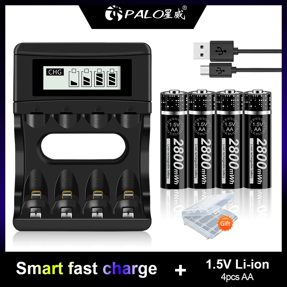 PALO 1,5 V AA 2800mWh литий-ионный Батарея 1,5 v AA Перезаряжаемые ...