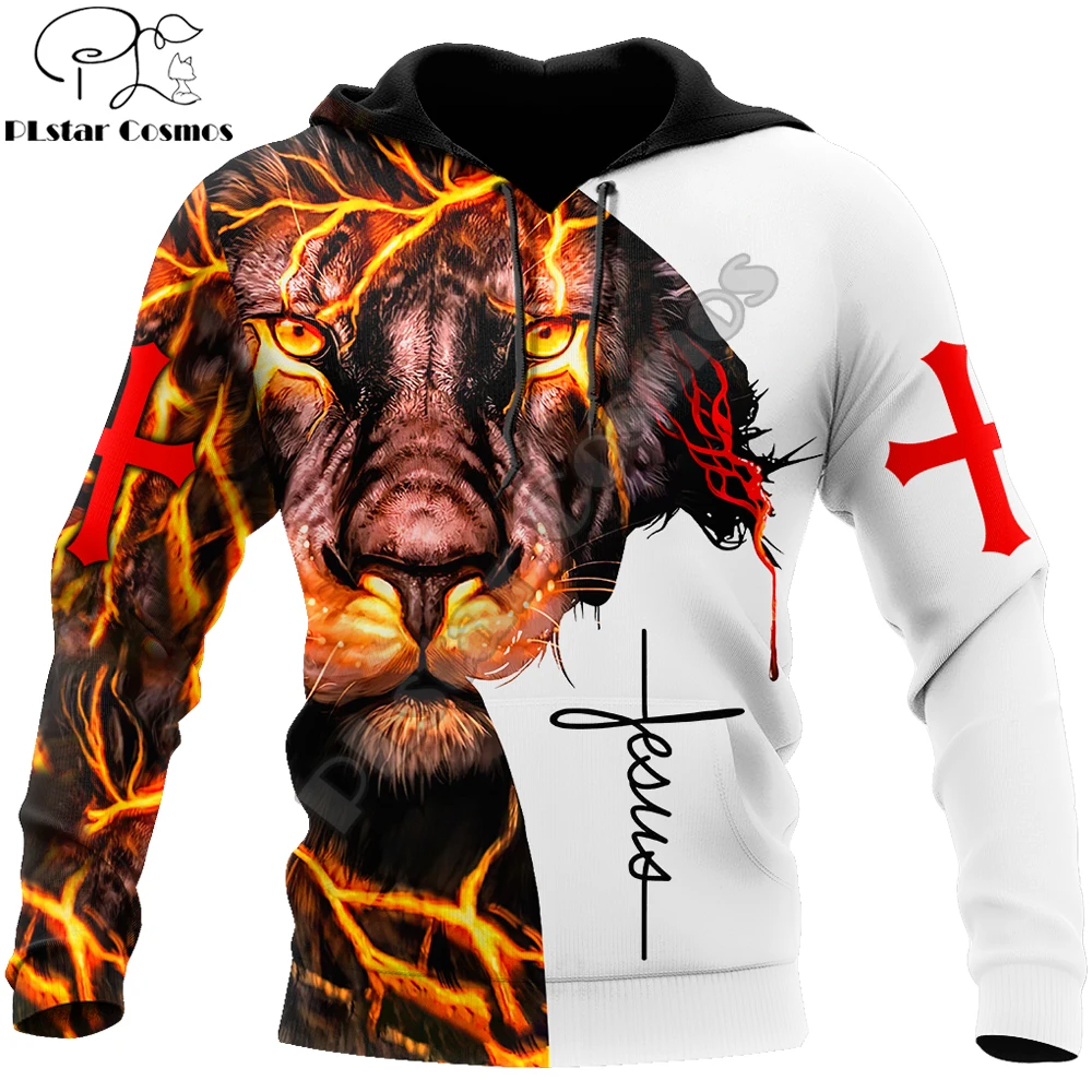Худи мужское осеннее с молнией и принтом Лев и Иисус