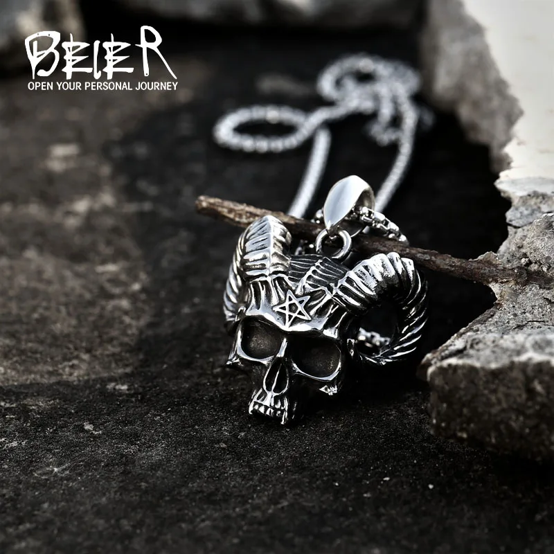 Модное винтажное ожерелье из нержавеющей стали с подвеской черепом Shofar для женщин и мужчин, ювелирное изделие