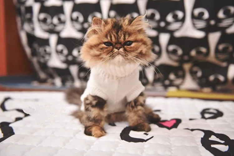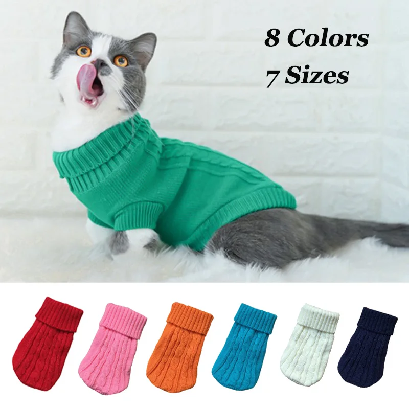Модная зимняя вязаная одежда для кошек, теплый джемпер, свитер с высоким воротником для маленьких кошек, костюм, куртка, одежда для домашних животных, товары для кошек