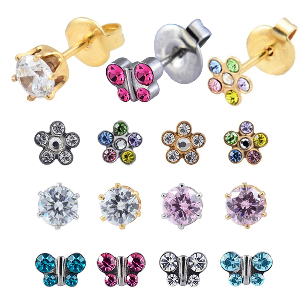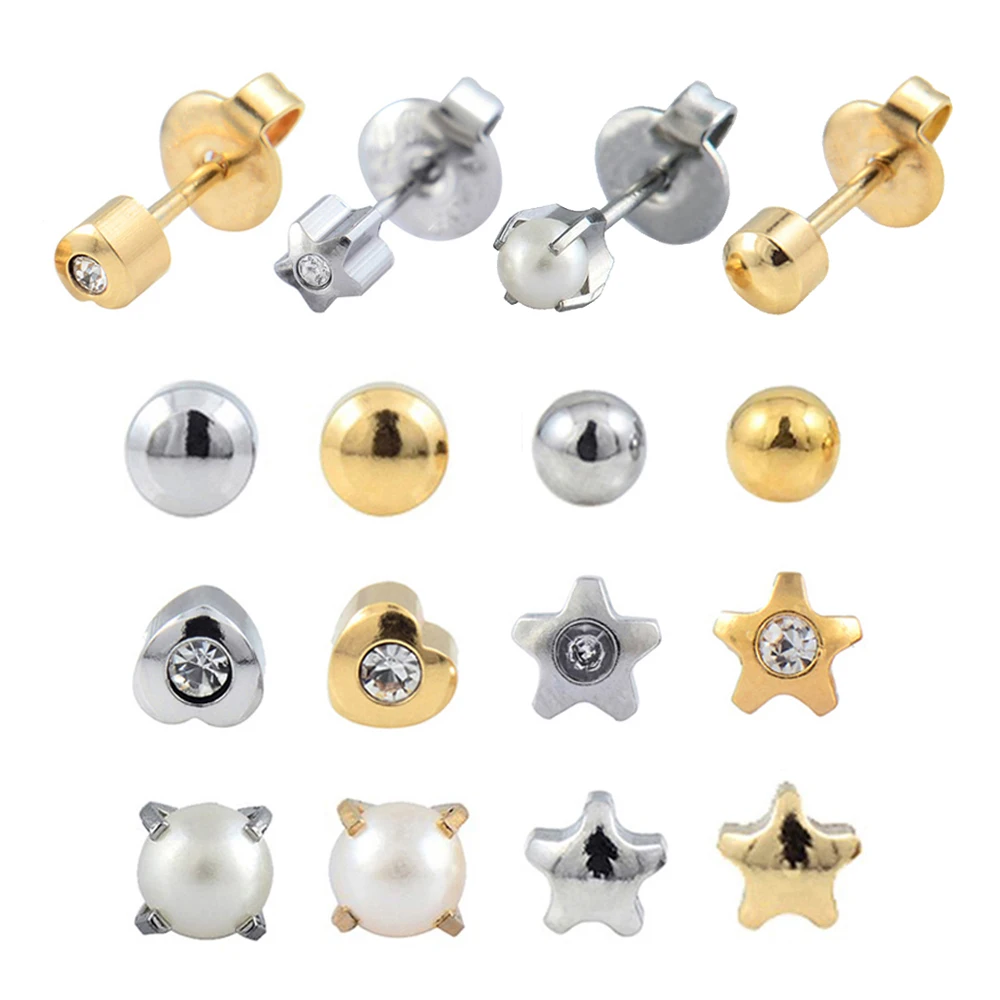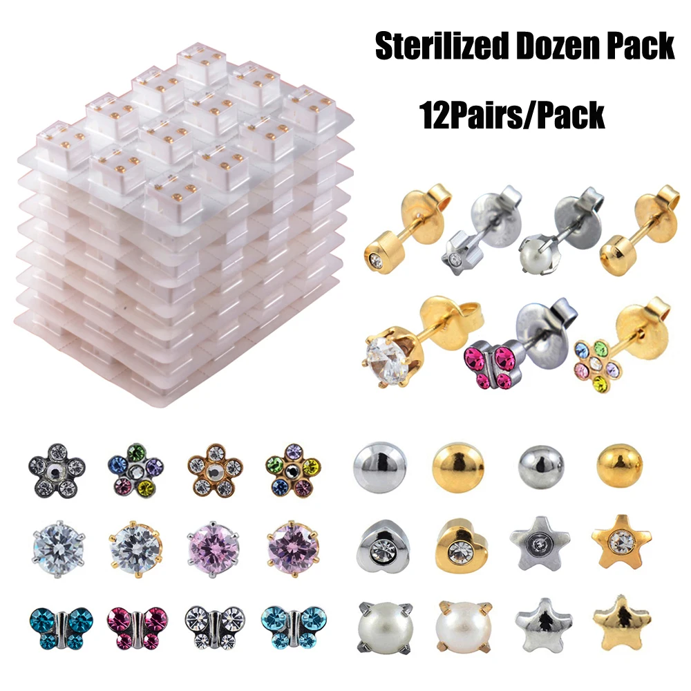 12 пар стерилизованных дюжин в упаковке, золотого и серебряного цвета, ушной хрящ, трагус Шпилька-Сережка для пирсинга, разные цвета, s-образные звезды, сердца, жемчужины