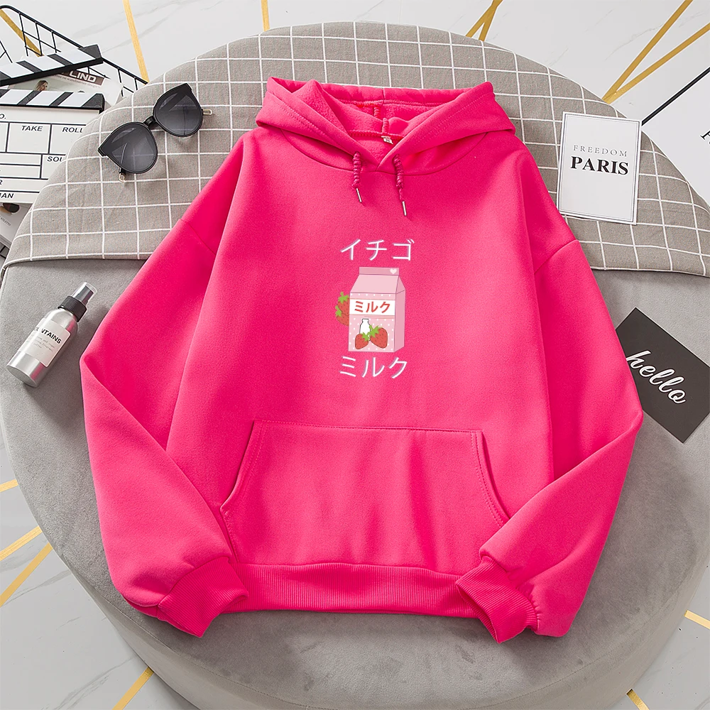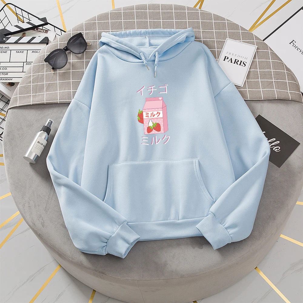 Kpop Милая теплая толстовка с клубничкой Harajuku стиль клубника молоко графические толстовки Женская Зимняя школьная уличная одежда