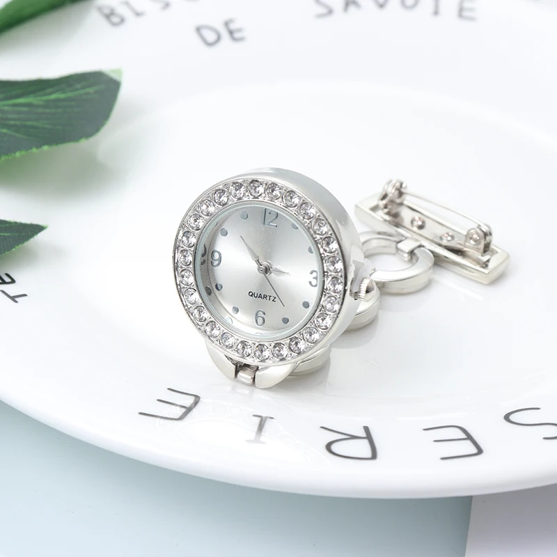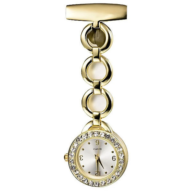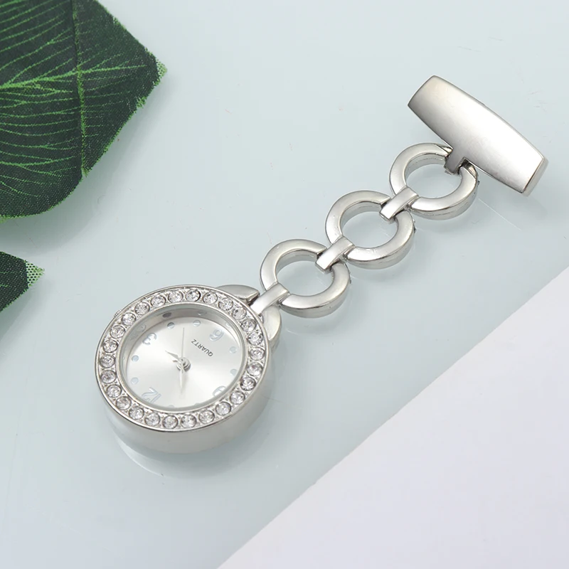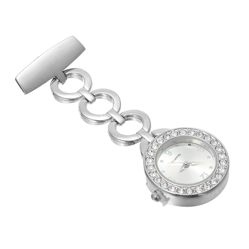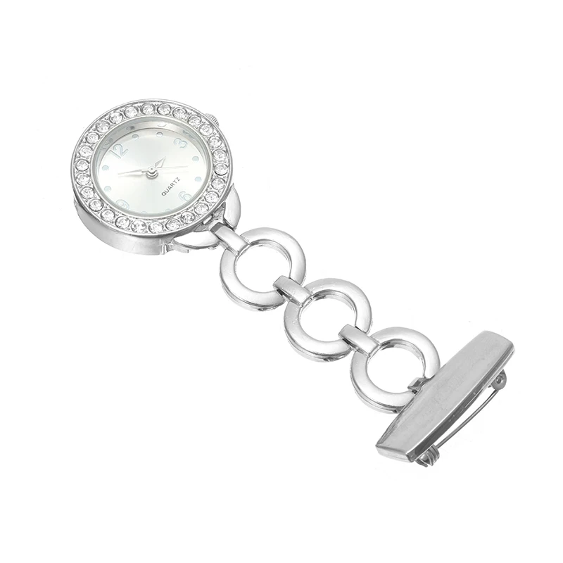 Изысканные хрустальные металлические часы медсестры, женские часы из нержавеющей стали, кварцевые броши, часы, золотые, серебряные, стразы, портативные часы