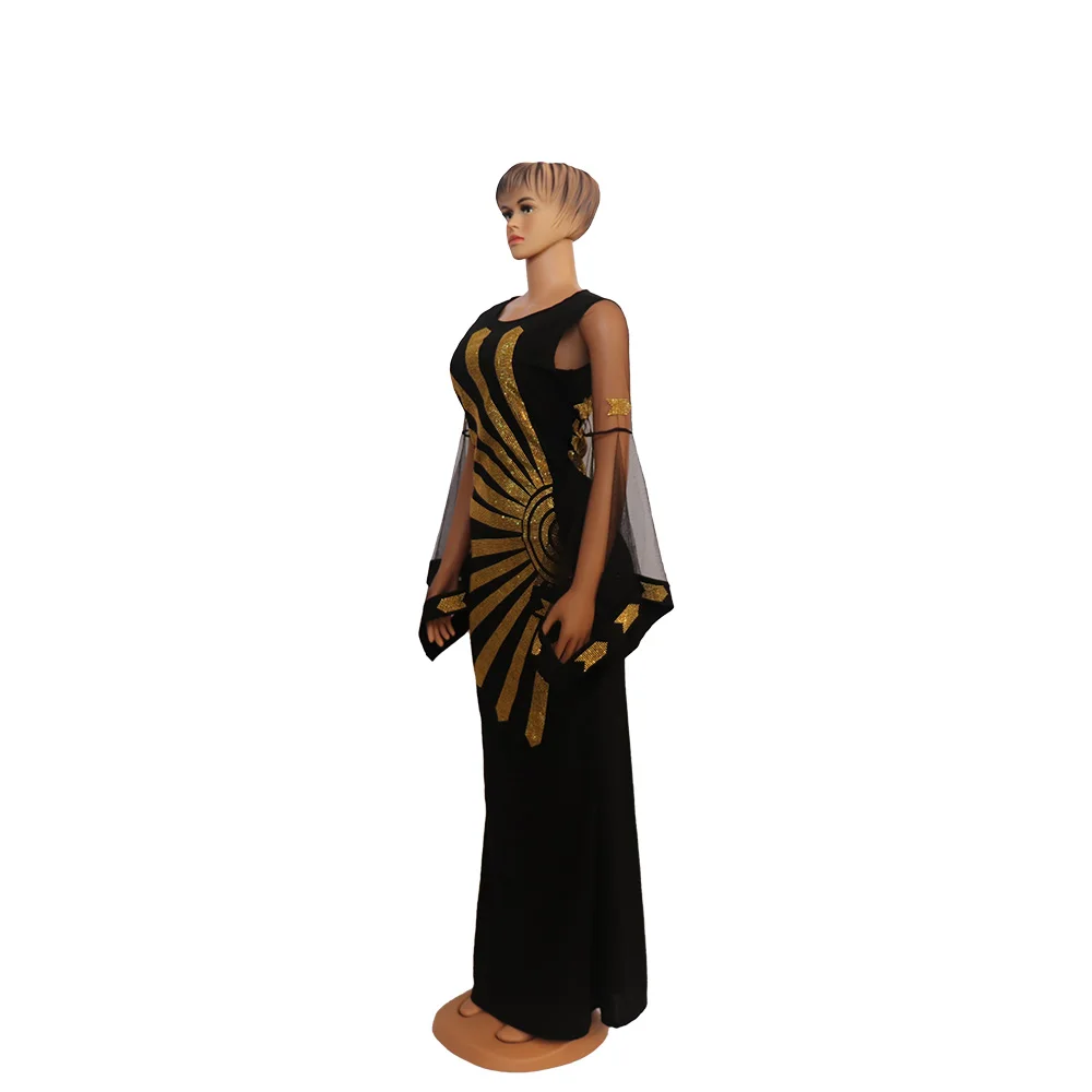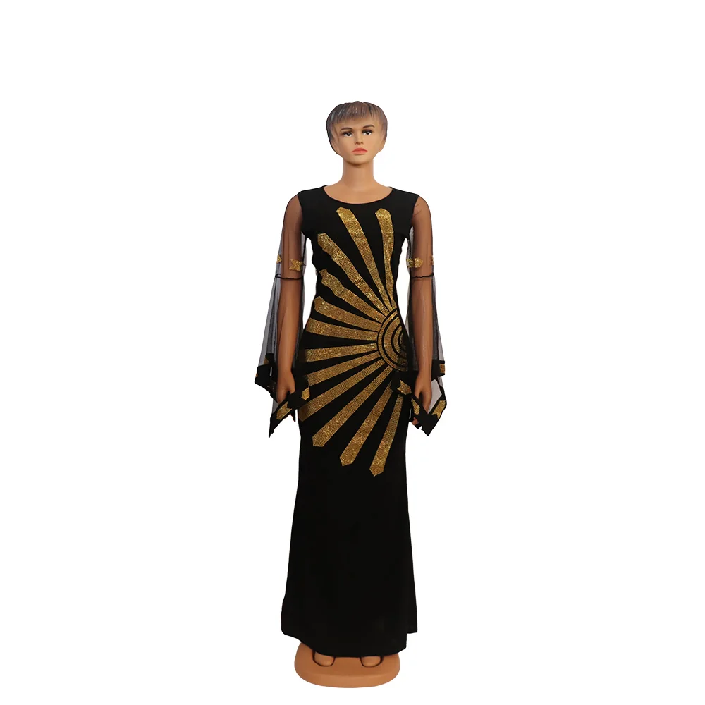 Платье для мамы в африканском стиле; Модное газовое платье с роговыми рукавами; Популярное растягивающееся платье большого размера со стразами и хвостом рыбы