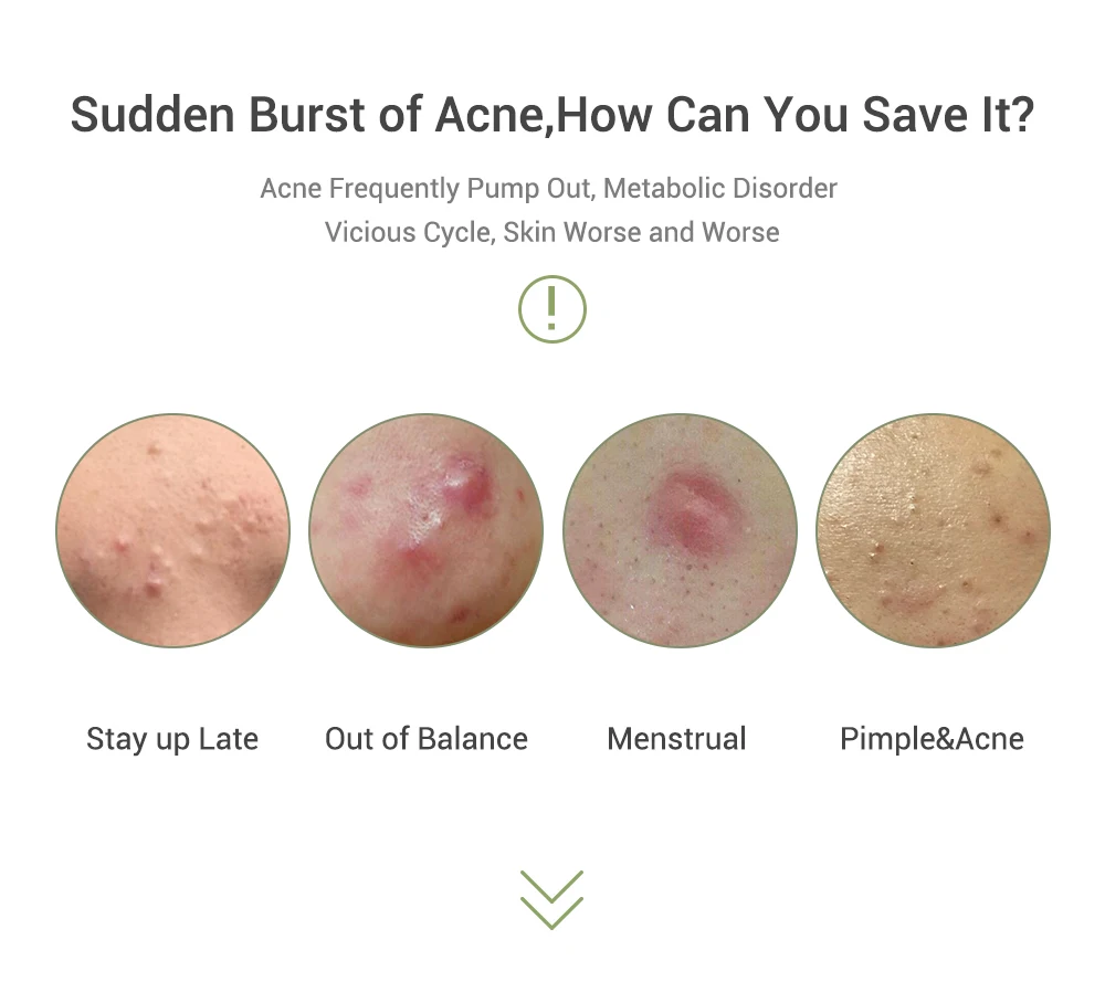 Внезапный всплеск акне, как вы можете его сохранить?Акне часто выкачивать, метаболическое расстройствоПорочный круг, кожа хуже и хужеОставайтесь поздноИз балансаМенструальныйПрыщи и прыщиКонтроль и ремонт масла, не беспокойтесь о акнеОставьте кожу чистой, гладкой и свежейСнятие акнеУлучшает способность восстанавливать кожу, увлажняет и снимает акне.Ремонт акнеРазбавьте удары и пятна от акне, улучшите эластичность кожи, прозрачность и блеск.Гладкая кожаГлубоко в кожу, восстанавливает кожу от источника и улучшает самозаживляющую способность кожи.Баланс воды и маслаОтрегулируйте водный и масляный баланс и Уменьшите появление акне.