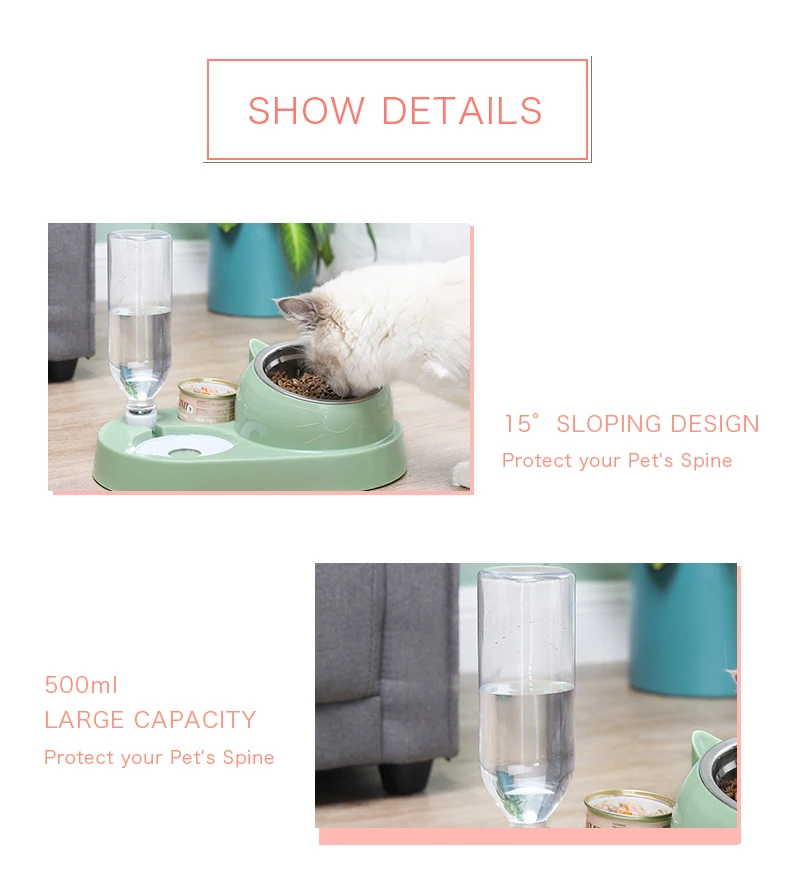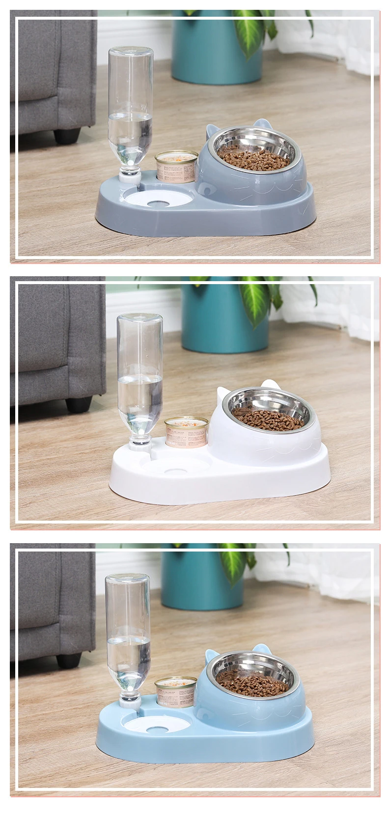 Кормушка для домашних животных, 4 в 1, миска для кошек и собак, Автоматическая, с дозатором воды, поворот на 15 градусов, нержавеющая сталь Кормление щенка