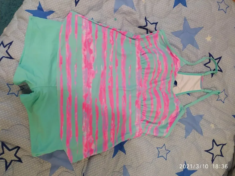 Купальник просто суперский, очень довольна! Рекомендую, у кого животик, все скрывает, размер на российский 52 xxl, можно xl.
