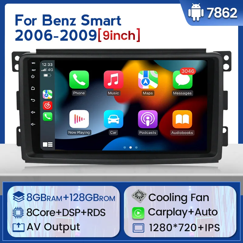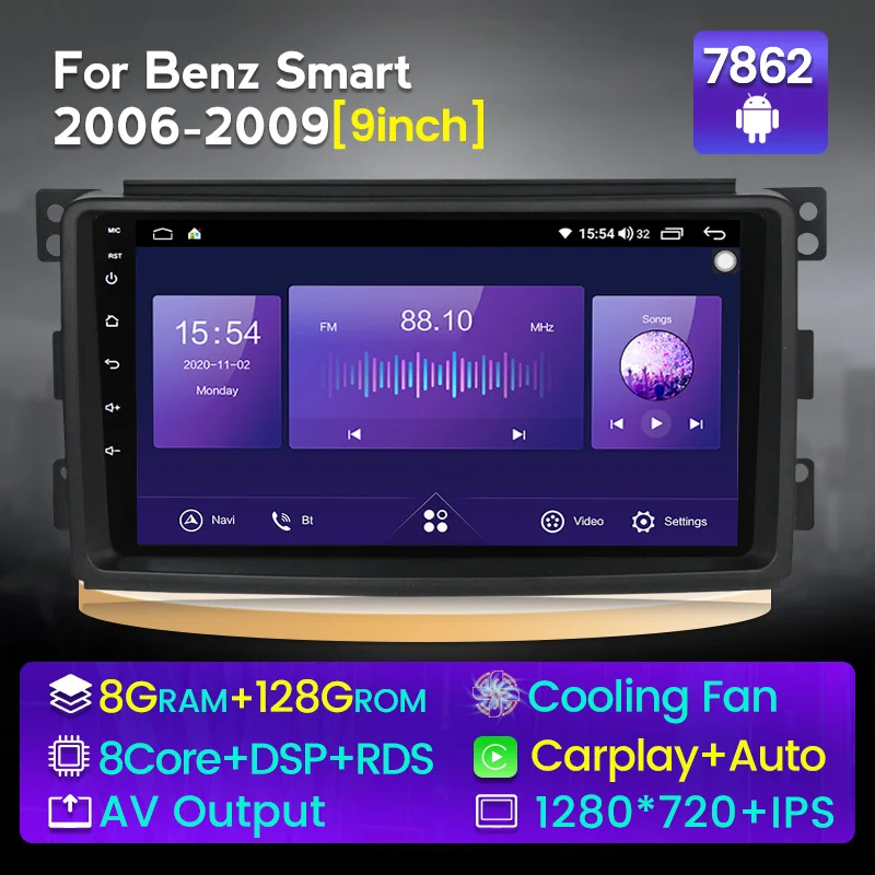 Топ! Android 11 автомобильный радиоприемник, мультимедийный видеоплеер для Smart Fortwo W451 2006 2009 2DIN навигация GPS 4G LTE 1280*720 IPS 2 din