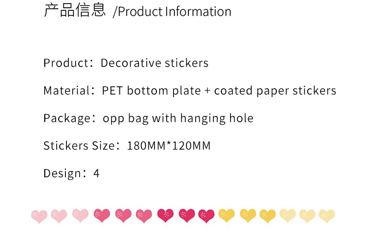 Изделие: декоративные наклейки Материал: Нижняя пластина ПЭТ + бумажные наклейки с покрытием Посылка: полипропиленовый пакет с отверстием для подвешивания Размер наклеек: 180 мм * 120 мм Дизайн: 4