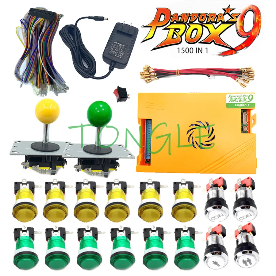 Pandora Box 9 1500 В 1 семейная Домашняя версия DIY Kit 5pin джойстик 33 мм Светодиодная аркадная кнопка для боевой игровой консоли
