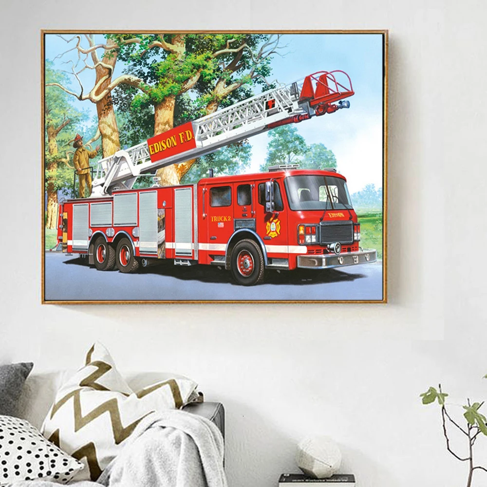 Трактор Экскаватор пейзаж DIY Краска по номерам Современная Настенн...