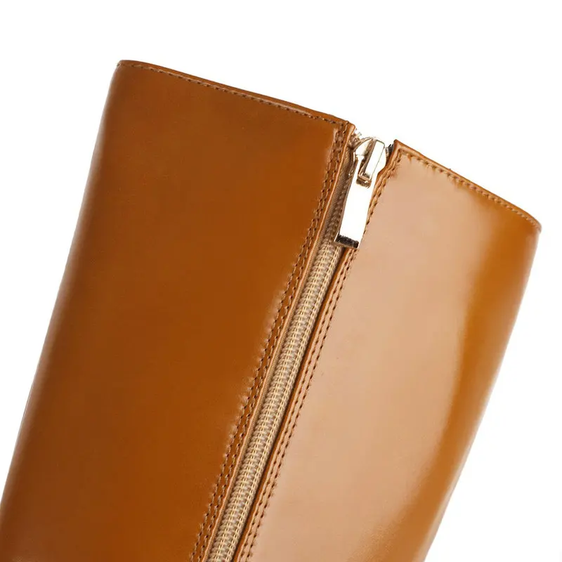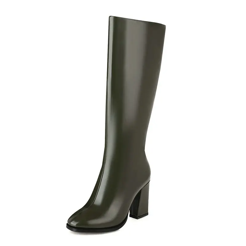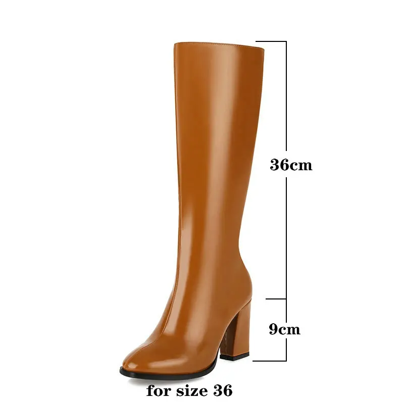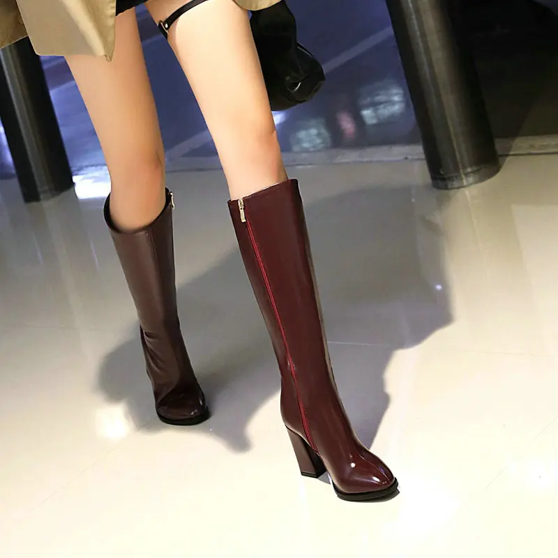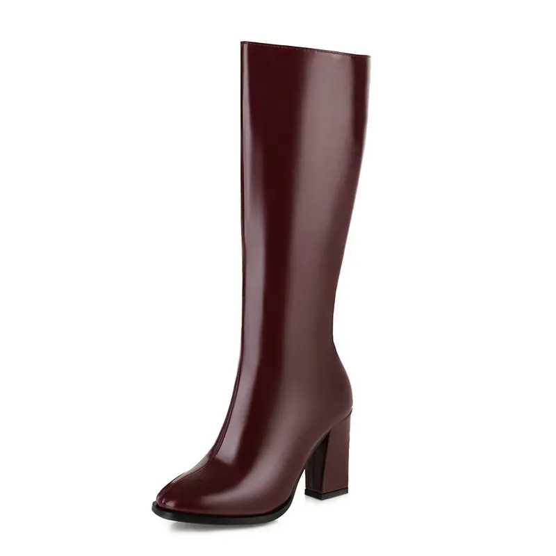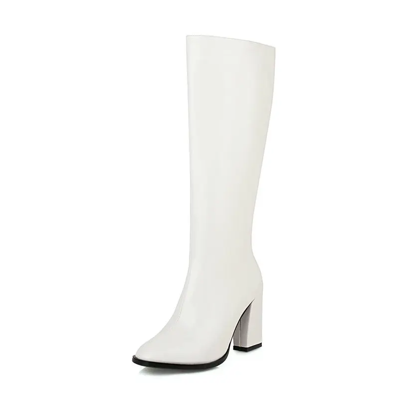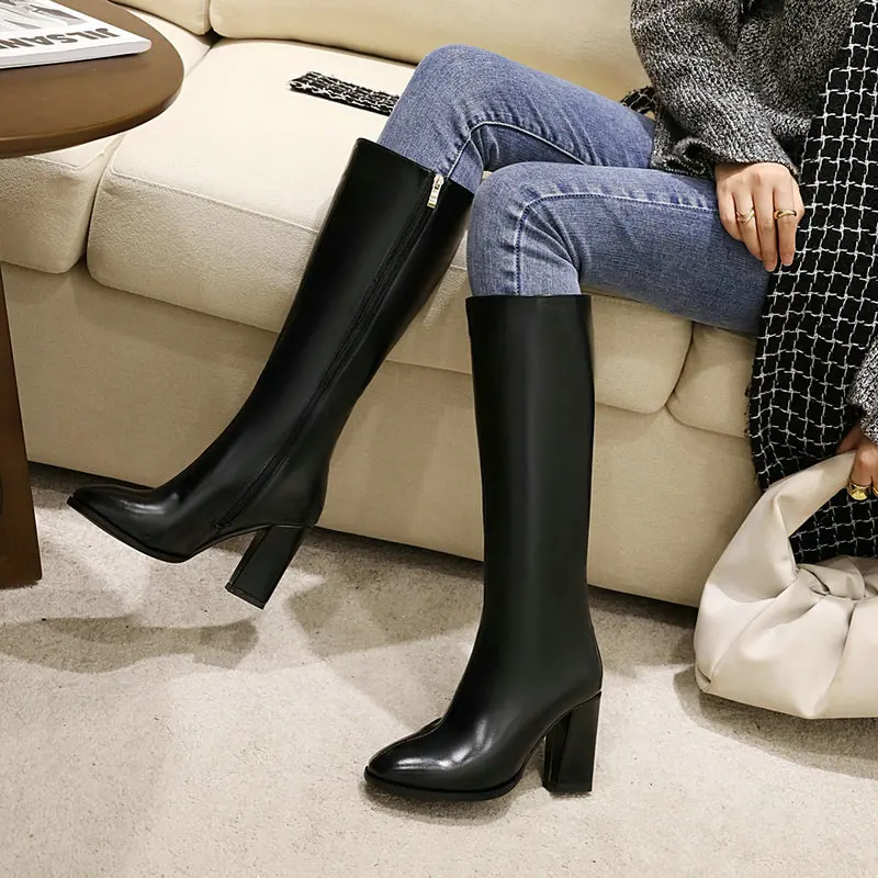 Женские сапоги до колена из ПУ кожи, с острым носком