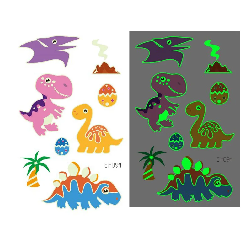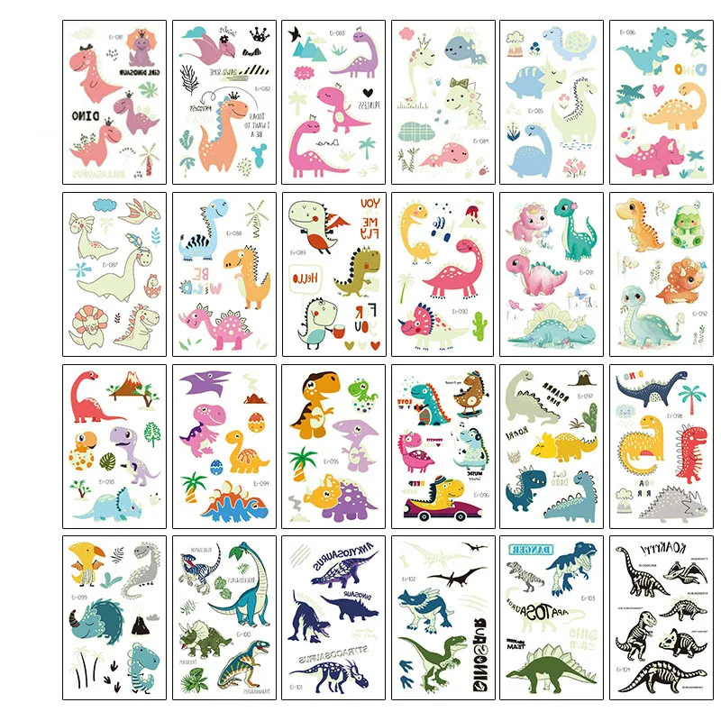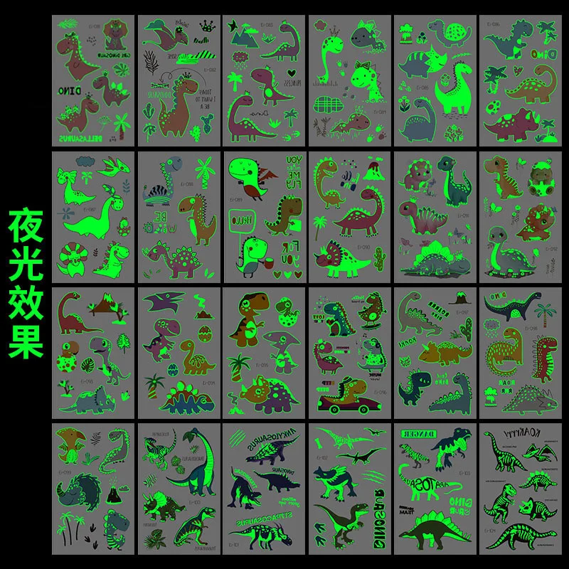Светящиеся Детские наклейки-татуировки-Динозавры, Мультяшные забавн...