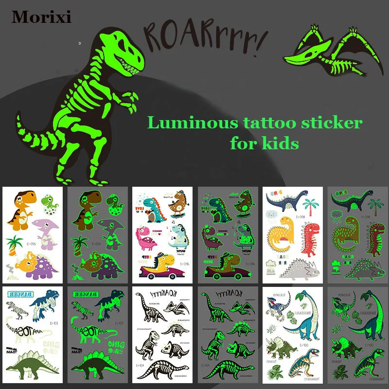 Светящаяся тату-наклейка Morixi для детей, украшение на тело, мультяшный динозавр, печать, переводная временная татуировка RA089
