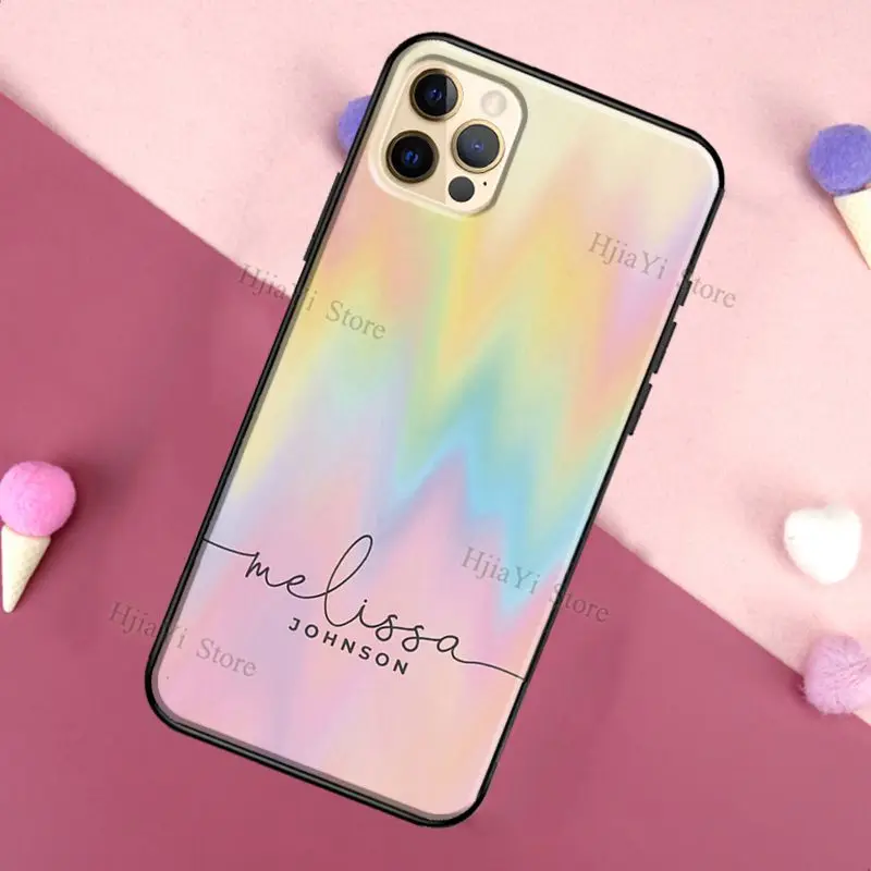 Чехол с изображением инициалов на заказ, летние радужные ладони Омбре для iPhone 12 Pro Max 13 mini, чехол для iPhone 11 Pro Max XS X SE2 7 8 Plus XR