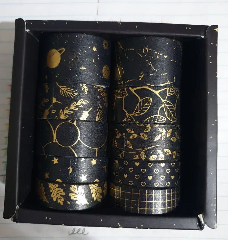 Декоративная Маскировочная лента JIANWU, 10 шт.компл., черная, бронзовая комбинация, декоративные наклейки, товары для рукоделия, школьный журнал