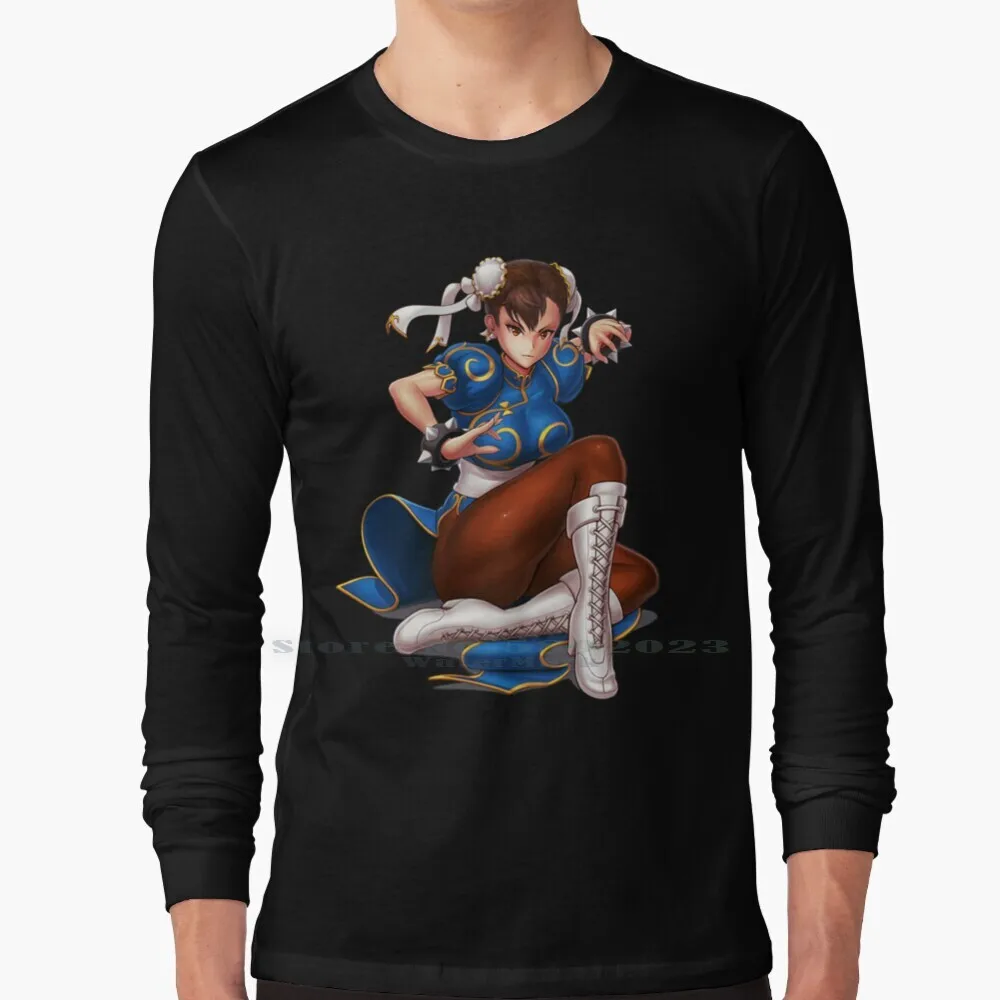 Стиль Chun-Li футболка с длинным рукавом 100% Чистый хлопок большой размер Chun Li Аниме Девушки истребитель поза