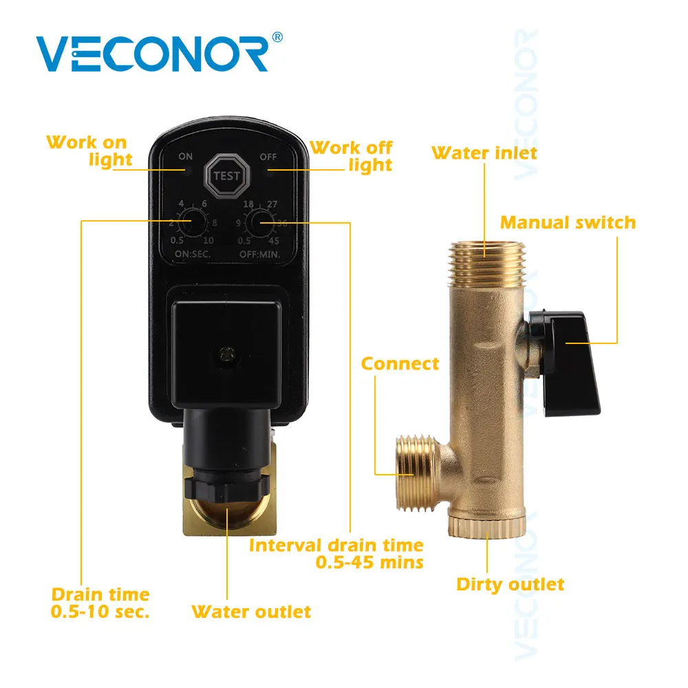 12 "электронный сливной клапан воздушный компрессор фильтр автоматические 2-полосная дренажные клапаны AC220V для Воздушные цилиндры резервуар для хранения