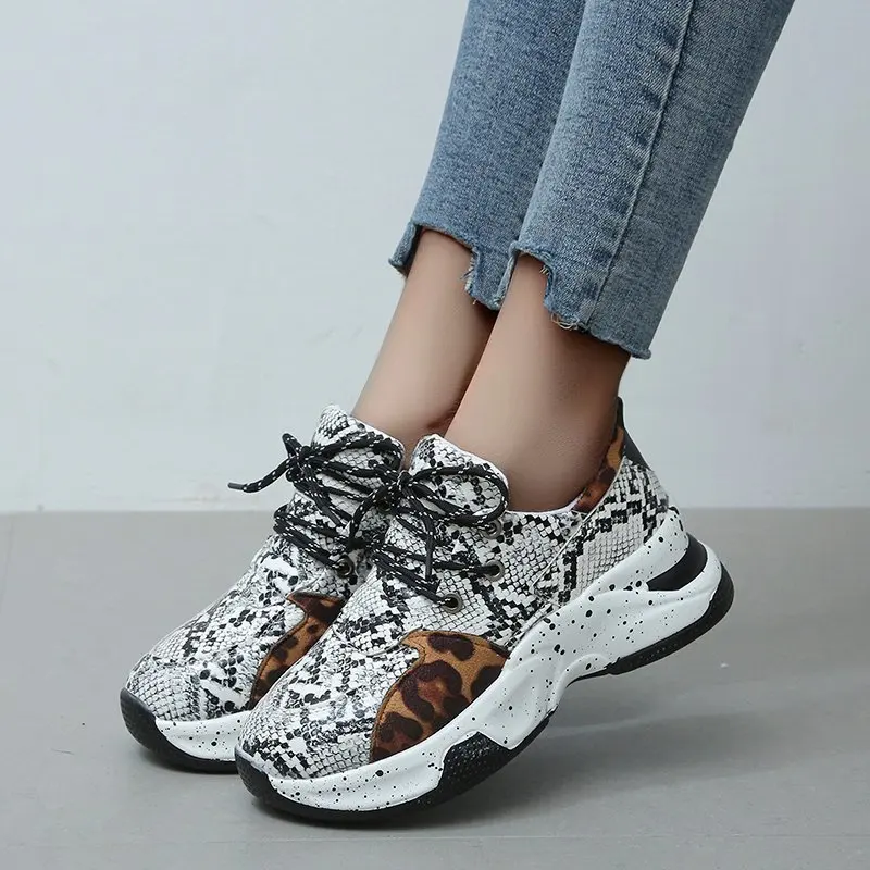 Женские кроссовки для бега на платформе, модные кроссовки на толстой подошве для женщин, змеиная кожа, с леопардовым узором, повседневная обувь для тренировок в зале