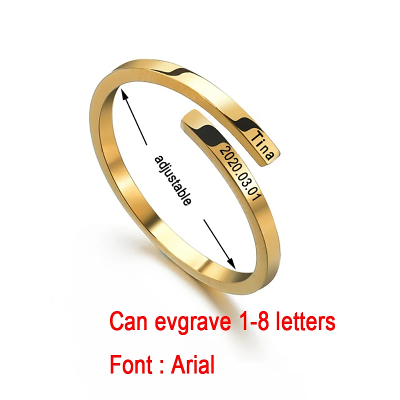 Название:Персонализированное кольцо настраиваемый размер кольцо из нержавеющей стали именные кольца Женский Регулируемый камень по дню рождения подарки Anillos Бесплатная доставкаМатериал: нержавеющая стальОсновной цвет: золотой цвет/стальной цвет/розовое золото золотой цветСлучаи: Годовщина, помолвка, подарок, вечерние, свадьба, день рождения, школаФункция: друзья/пары/Влюбленные/Мама/девушка/Дети/дочь