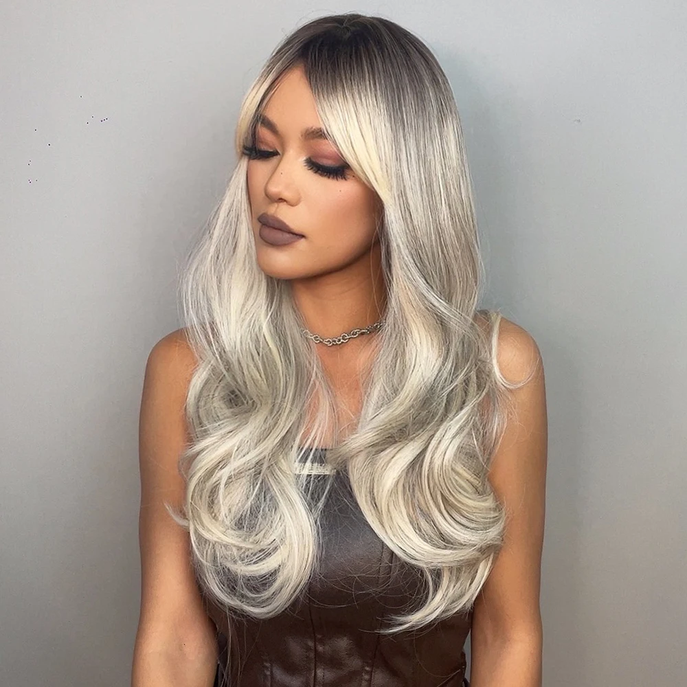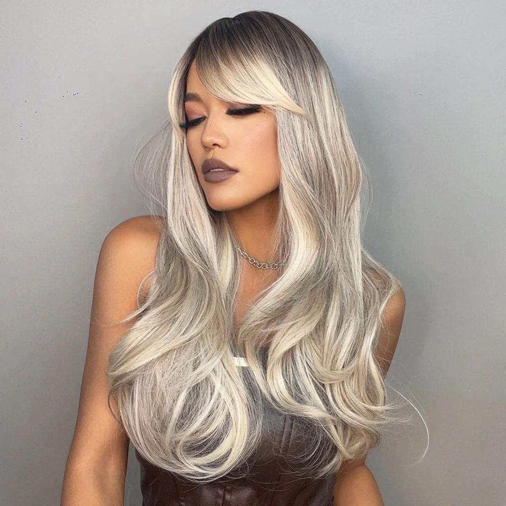 Парик женский из искусственных волос с челкой, черного, серого, пепельно-белого цвета, термостойкий
