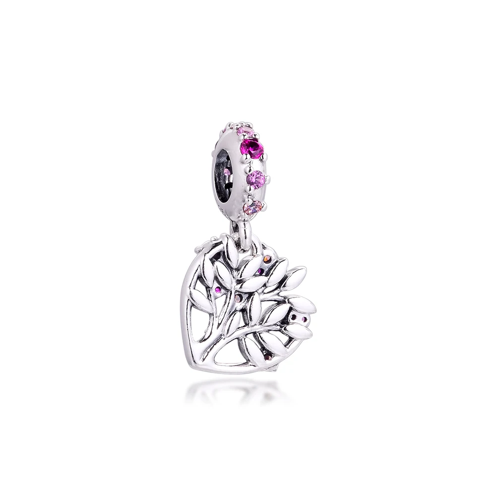 Подходит для браслета Pandora, 925 пробы, серебряный, розовое сердце, семейное дерево, подвески, металлические бусины для изготовления ювелирных изделий, Bijoux Femme 2020