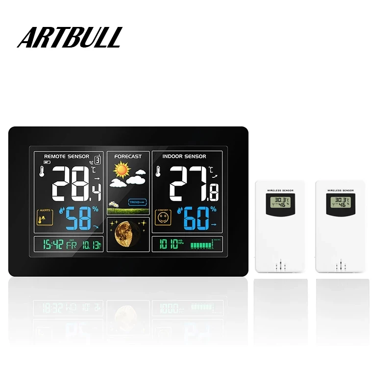 Термометр-гигрометр для использования в помещении и на улице, цветная Беспроводная метеостанция, Дистанционный датчик, будильник, вечный календарь