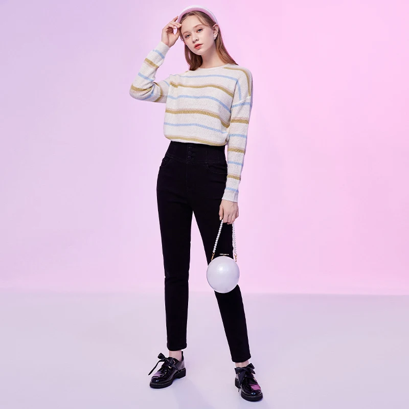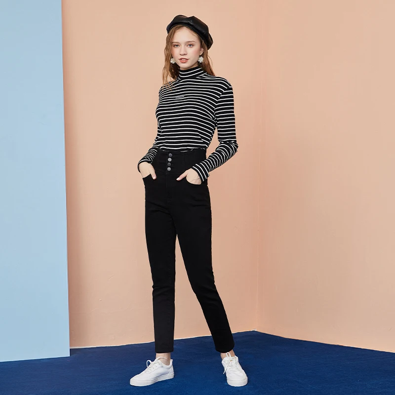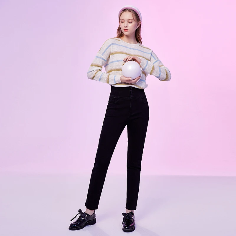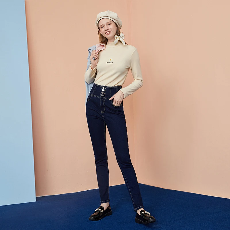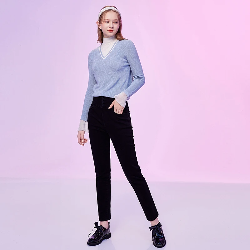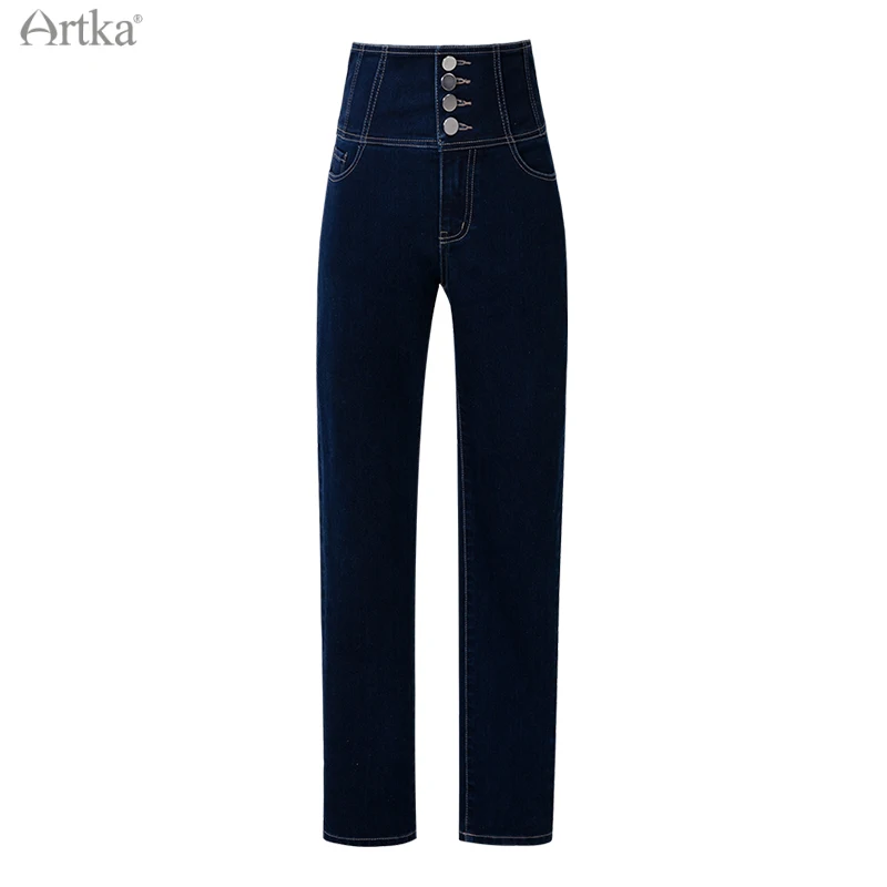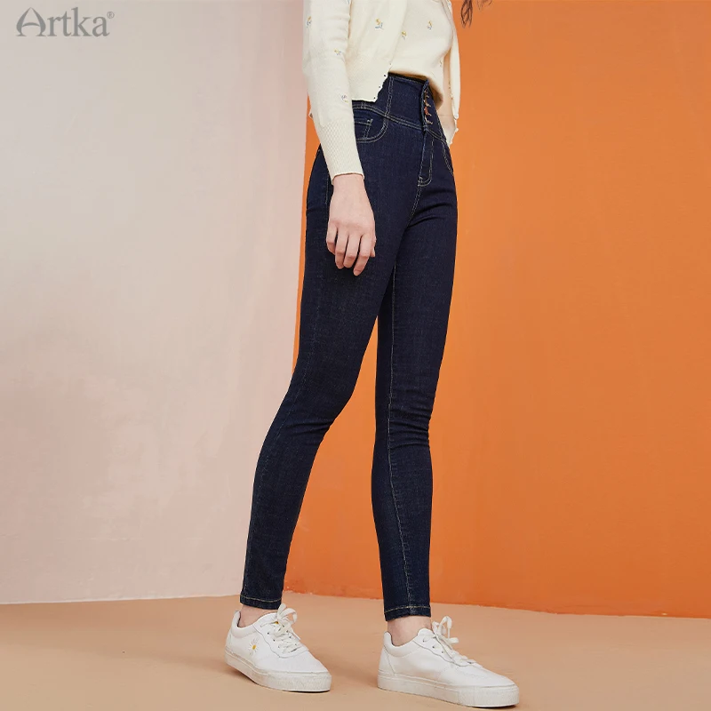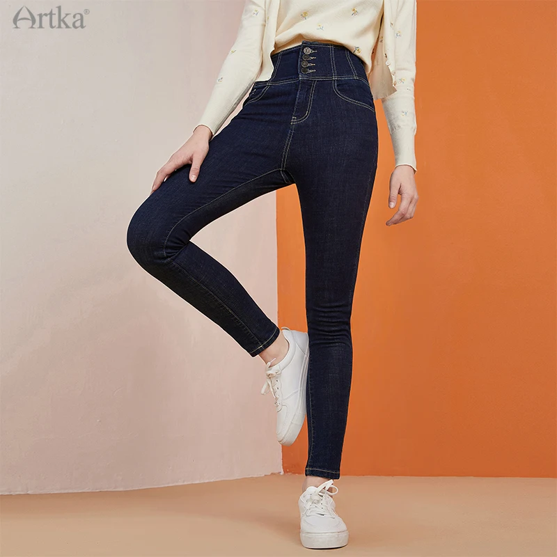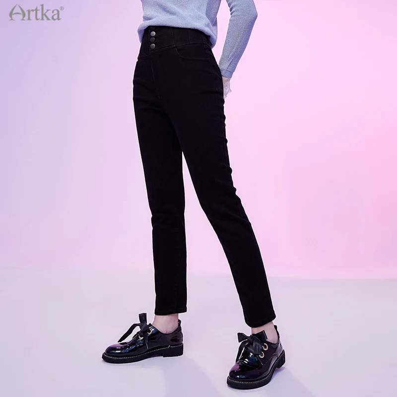 Женские джинсы с высокой талией ARTKA, утепленные вельветовые брюки-карандаш из денима, повседневные облегающие джинсы, зима 2020