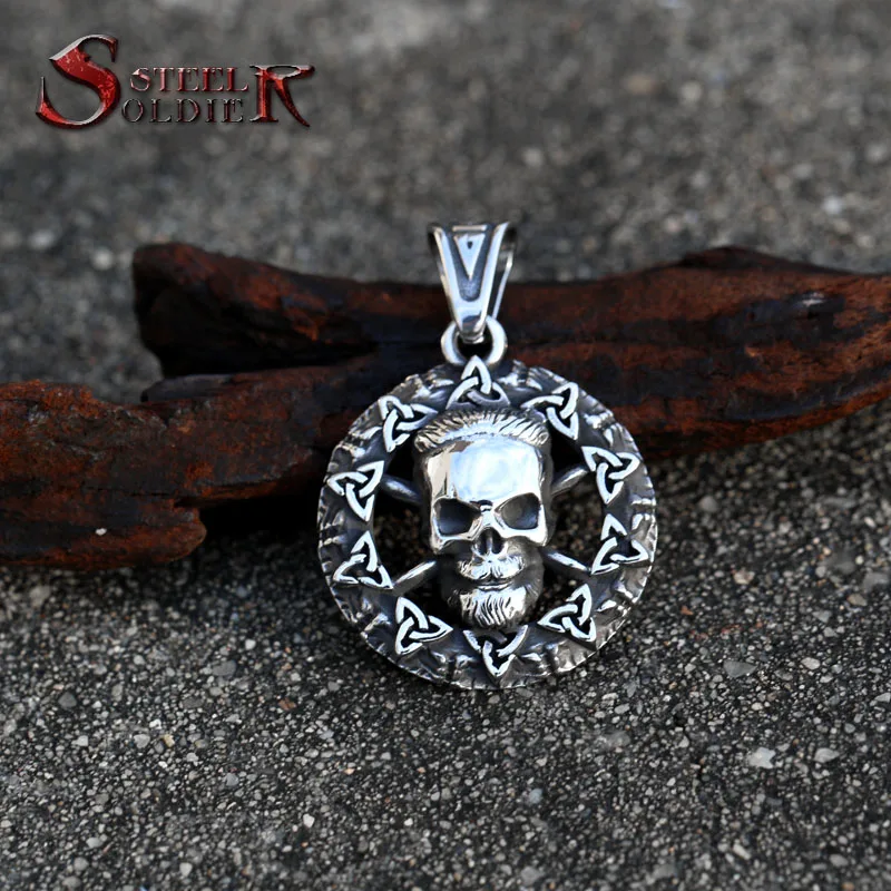 Стальной Солдат Моды Valknut череп Винтаж викингов топор воин из нержавеющей стали кулон цепочка ожерелье ювелирные изделия