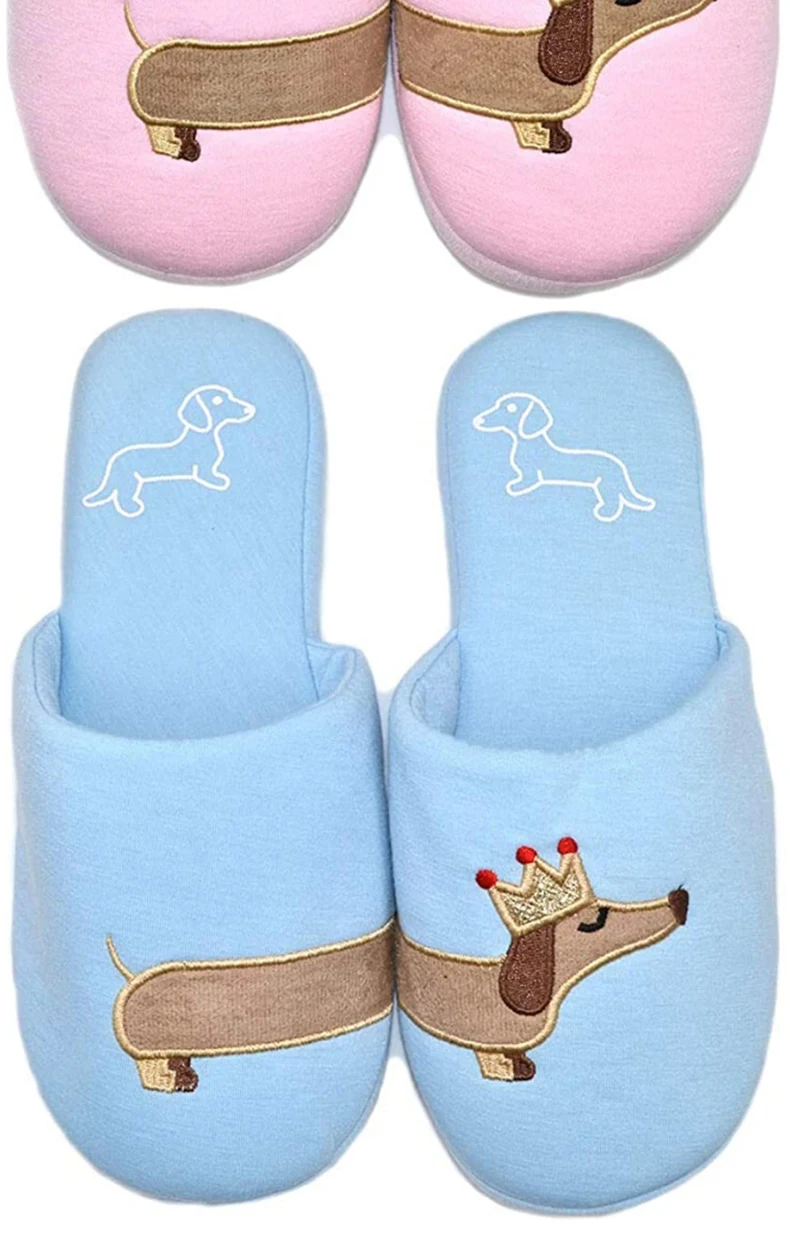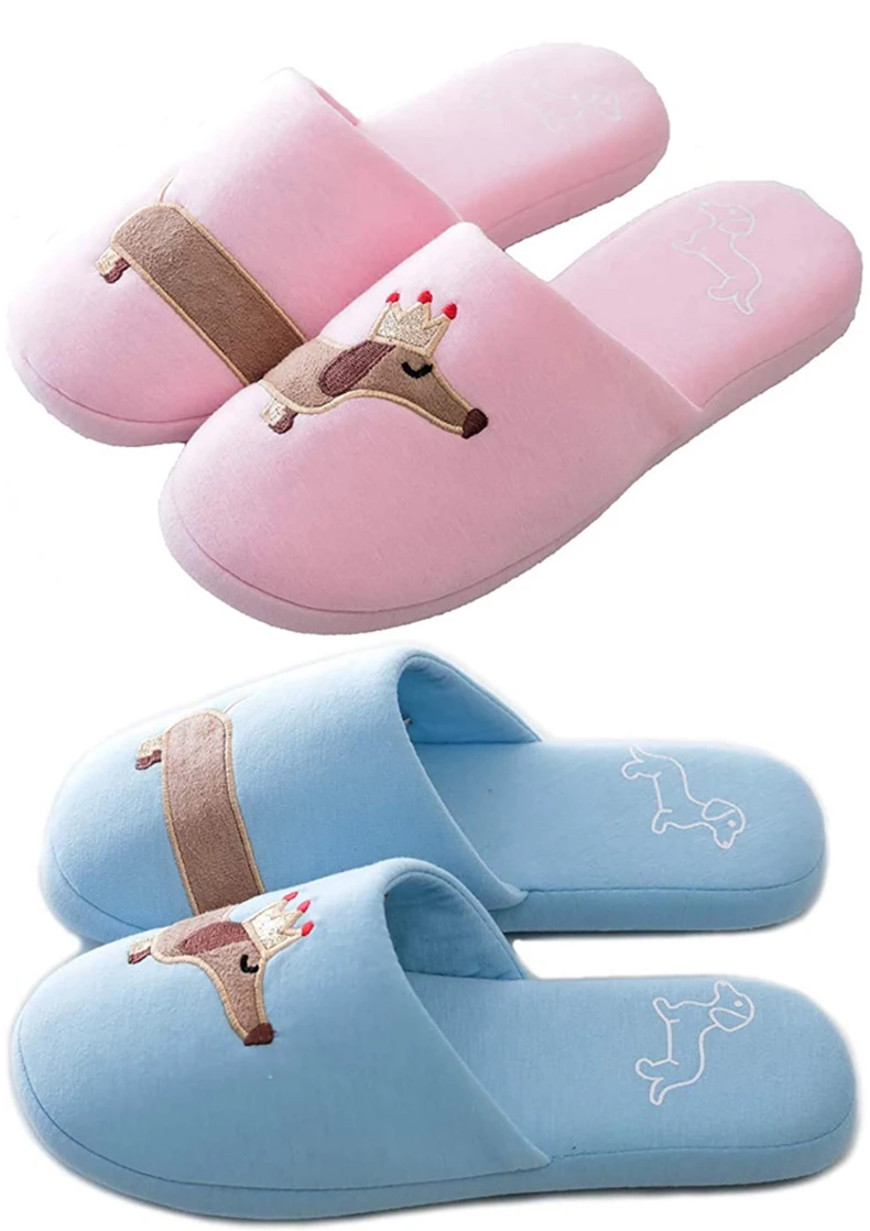 Женские пушистые розовые и светло-голубые плюшевые хлопковые тапочки с собакой на таксе плюшевые Тапочки