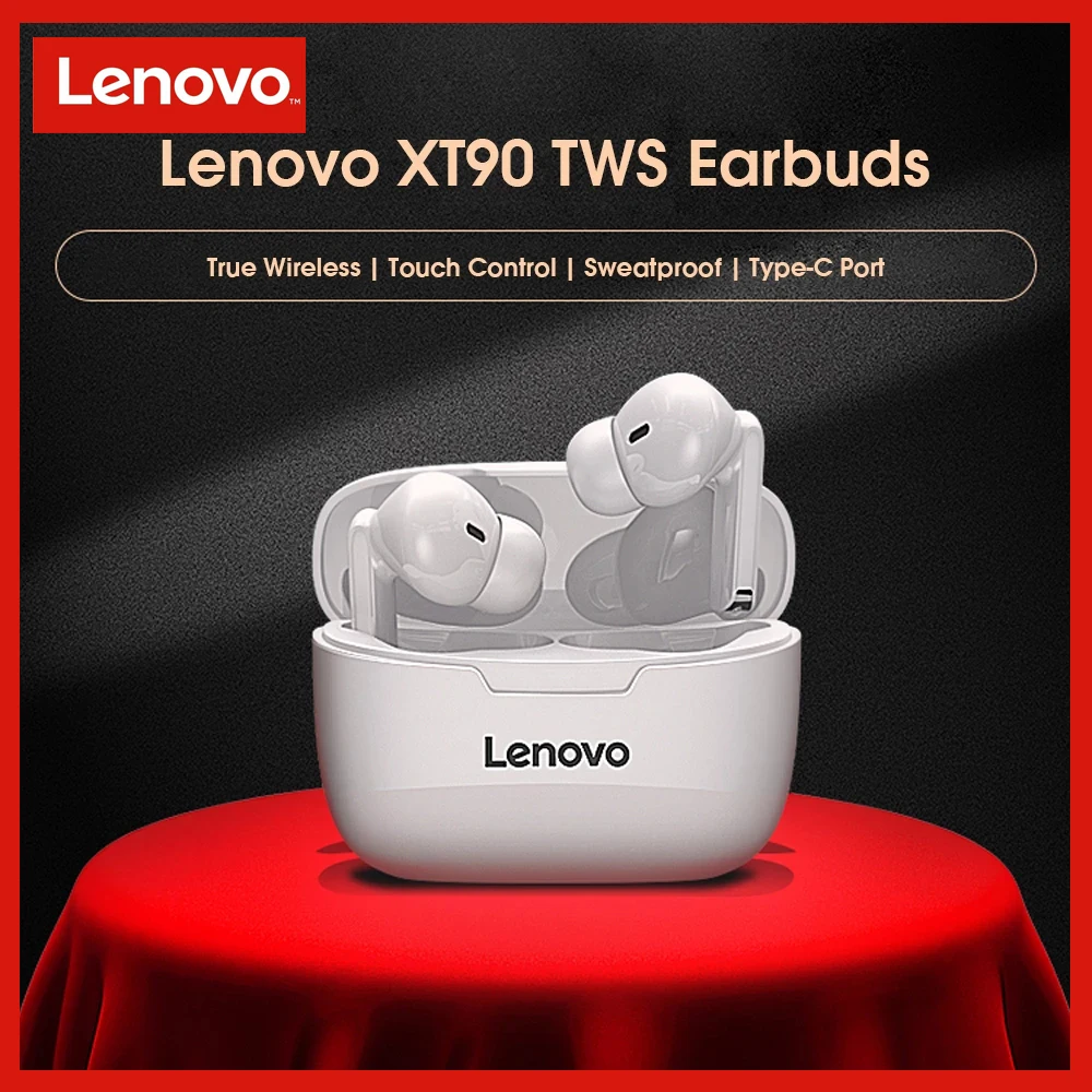 Оригинальные беспроводные наушники Lenovo XT90, TWS, Bluetooth 5,0, Двойные стерео басы, сенсорные IPX5 водонепроницаемые наушники с зарядным боксом 300 мАч