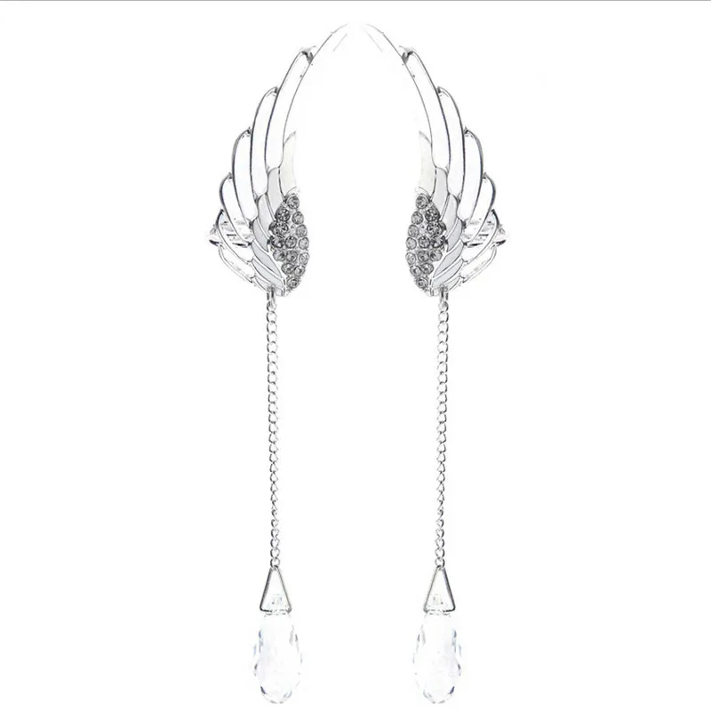 Серьги ангельские крылья со сверкающими бриллиантами, клипса для уш...