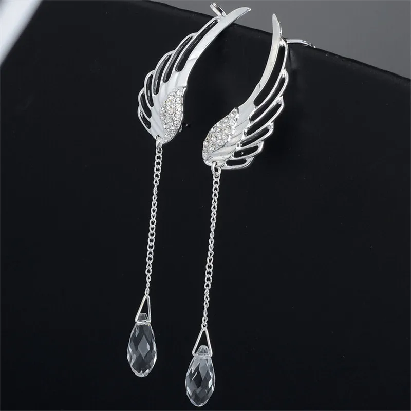 2020 Новое посеребренное толстовка с капюшоном, надписью Angel и принтом крылышки My Stylist и с украшением в виде кристаллов серьги-подвески в форме капли серьги-гвоздики для женщин длиной манжетой к серьги в богемном стиле, сережки-гвоздики