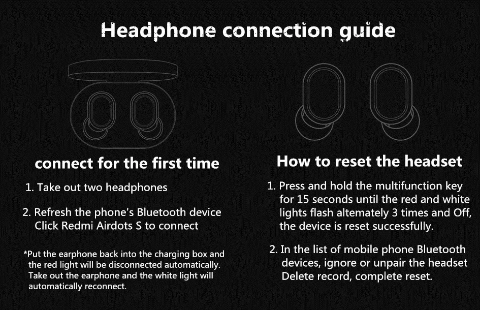 Вход: 5 В = 500 мА Выход: 5 В = 150 мА Время зарядки: Approx.2h Время работы в режиме ожидания: прибл. 4 месяца Емкость аккумулятора: 300 мАч Тип батареи: литий-полимерный Чистая Вес из одного наушника: около 5,0 г Вес нетто зарядного устройства: около 35 г Общий вес нетто коробки: 95 г