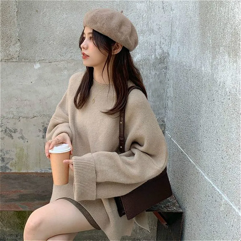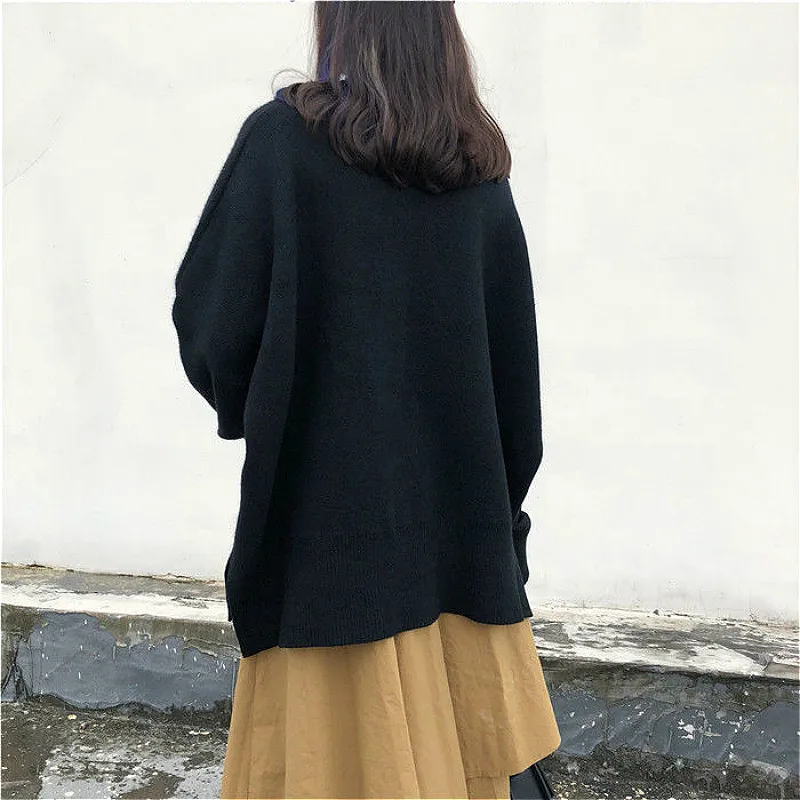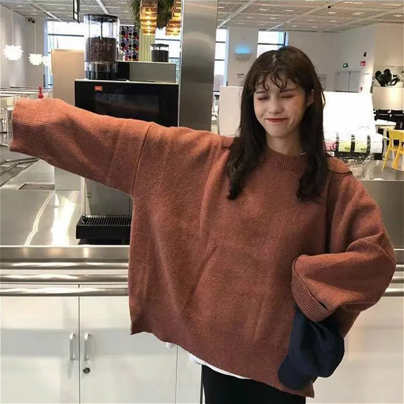 Осенне-зимний новый однотонный свободный свитер с разрезом женский ...